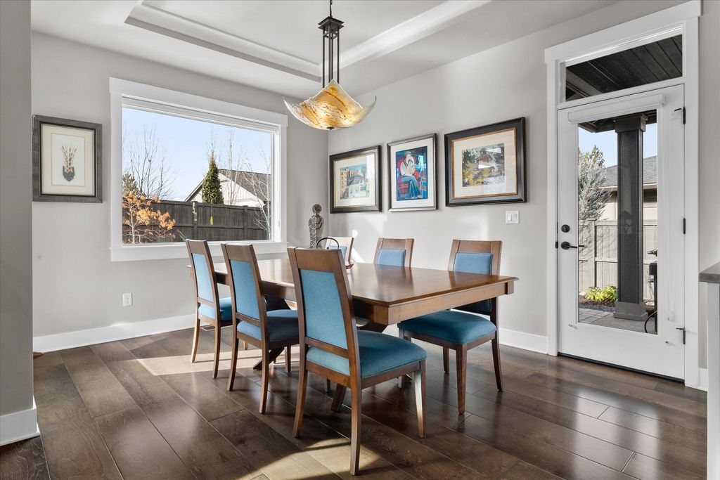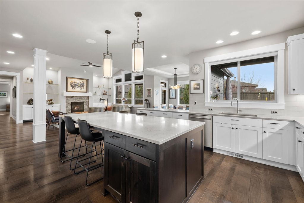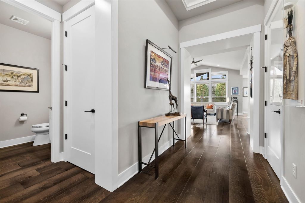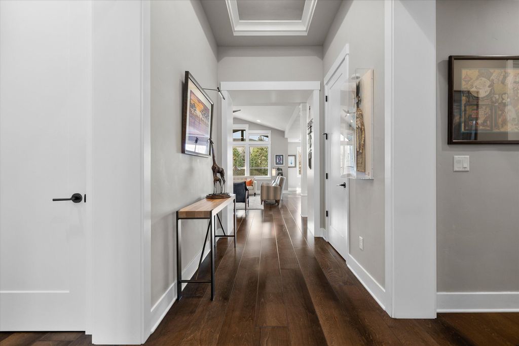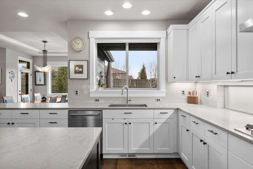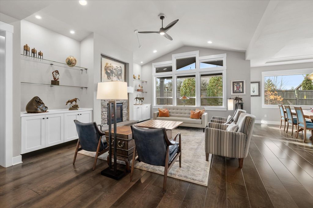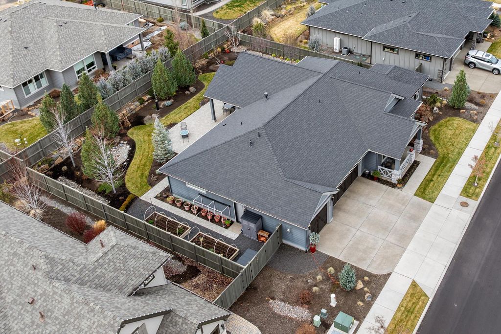 Experience exceptional single-level living in this beautifully upgraded four-bedroom, two-and-a-half-bath home in River Vale, SW Bend. Rich hardwood floors extend throughout the living spaces, creating a warm and sophisticated atmosphere. The open-concept design enhances natural light and offers effortless flow between the spacious kitchen, dining area, and inviting great room"”perfect for everyday living and entertaining.Custom glass shelves to display art. Guest bedrooms provide comfort and flexibility for guests, work, or hobbies. Outside, a beautifully landscaped backyard awaits, featuring raised garden beds ideal for growing your own vegetables, flowers, or herbs. Whether relaxing on the patio or tending to your garden, this private outdoor haven offers year-round enjoyment. Completing this exceptional property is a generous triple-car garage, providing ample space for vehicles, an abundance of custom built ins for storage. With its thoughtful upgrades, this home truly stands out.