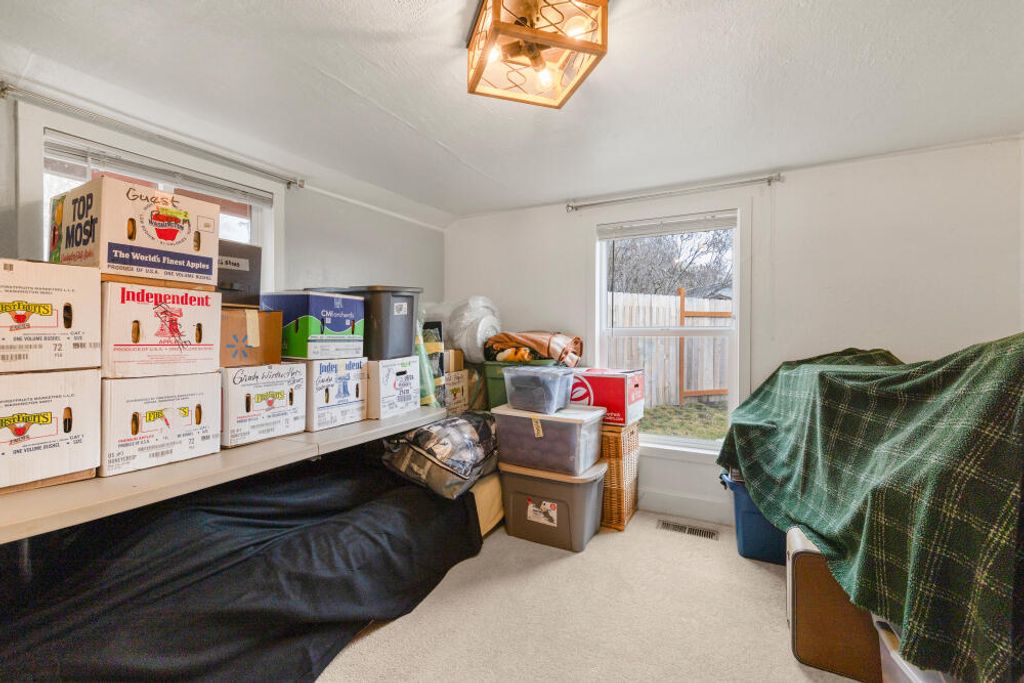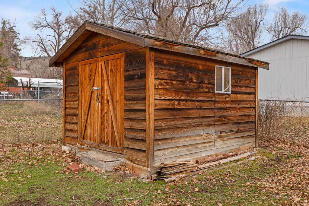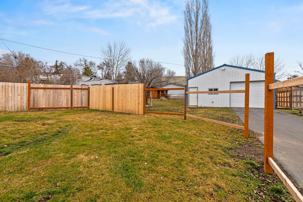 Rare property featuring a 24' x 36' insulated shop with 110/220 power and its own panel, on a fully fenced .41-acre lot with electric gate, plus a beautifully maintained 2-bedroom, 1-bath home with 1,360 sq ft of living space. Updates include a 10-year-old roof, new laminate flooring in the primary bedroom, and a fully remodeled bathroom. The attached non-living flex space offers functionality and the potential for future expansion. An enclosed patio with a hot tub adds enjoyment. The meticulously landscaped yard includes irrigation rights, a front and rear sprinkler system, mature apple, pear, and plum trees, a greenhouse with electricity and drip system, and multiple sheds. Located in a desirable school district near shopping, this property combines shop space, usable land, privacy, and convenience. Don't miss this rare opportunity.