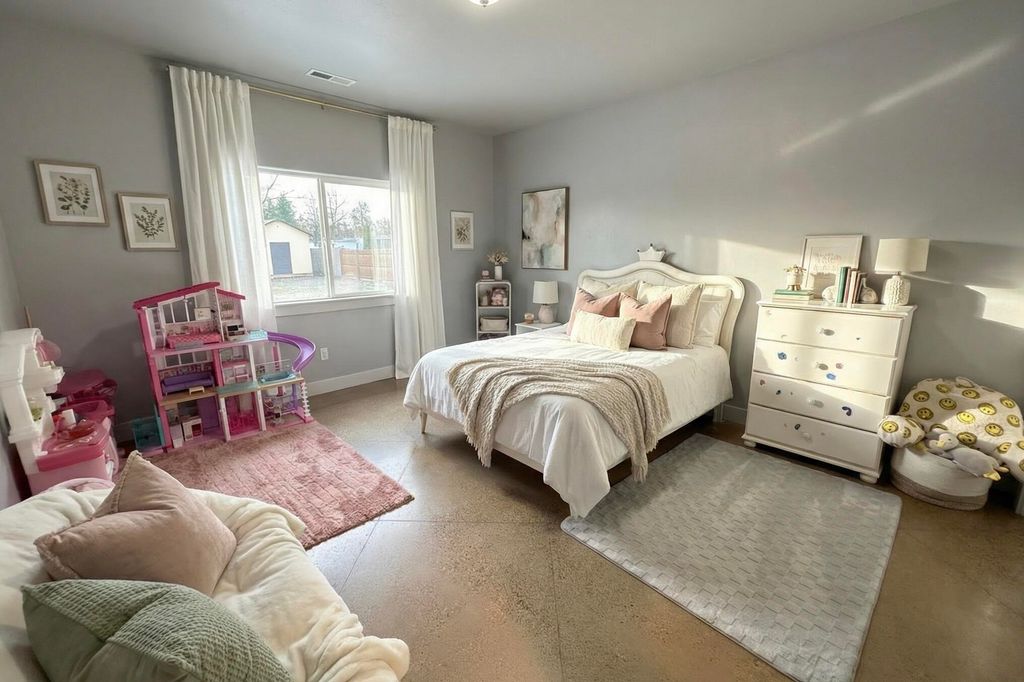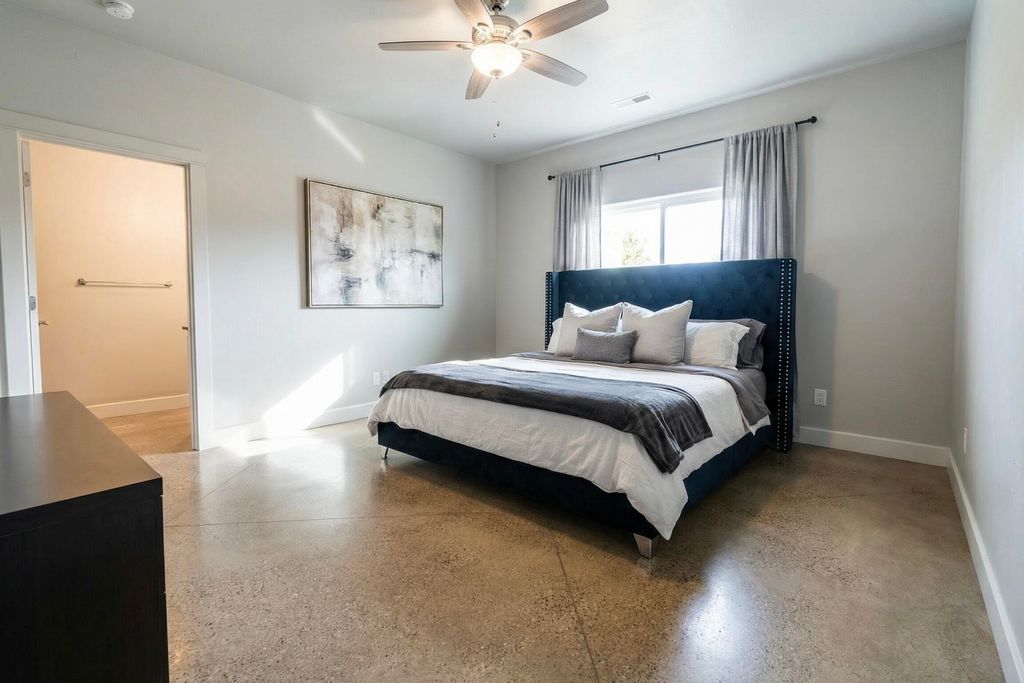Don't miss the opportunity to own a beautiful home that offers the perfect blend of convenience and privacy, set on an over half-acre lot just minutes from town. Featuring a functional split-floor plan, the home includes polished concrete floors throughout, granite countertops, and vaulted ceilings that enhance the open living spaces. The spacious Great Room flows seamlessly into the kitchen and dining area, creating an ideal setting for everyday living and entertaining. The primary suite offers a walk-in closet and a main bathroom with a dual-sink vanity. Two additional bedrooms and a guest bathroom are positioned on the opposite side of the home for added privacy. A well-appointed utility room provides generous cabinetry and extra storage, and the property is completed by an oversized garage.