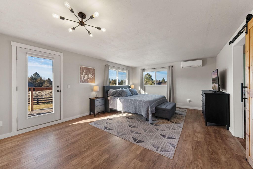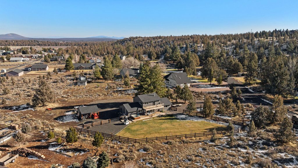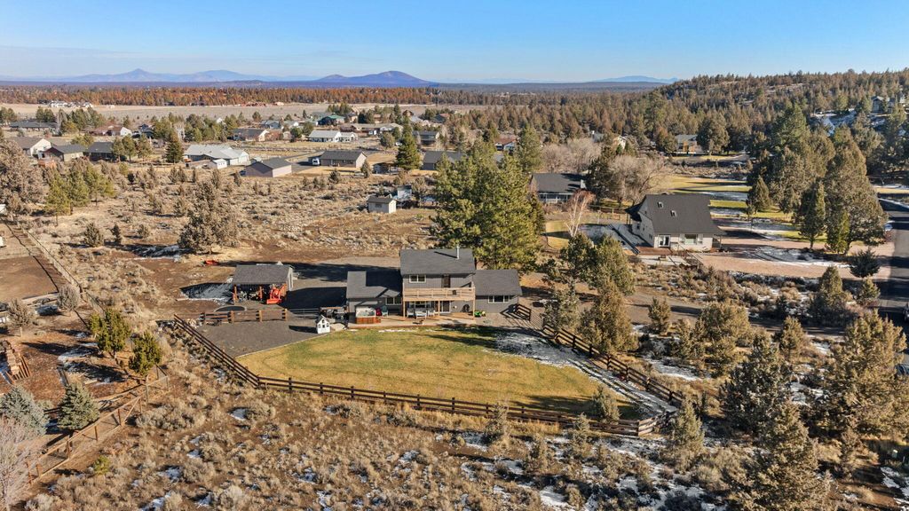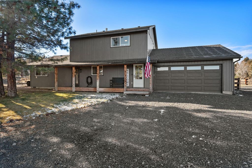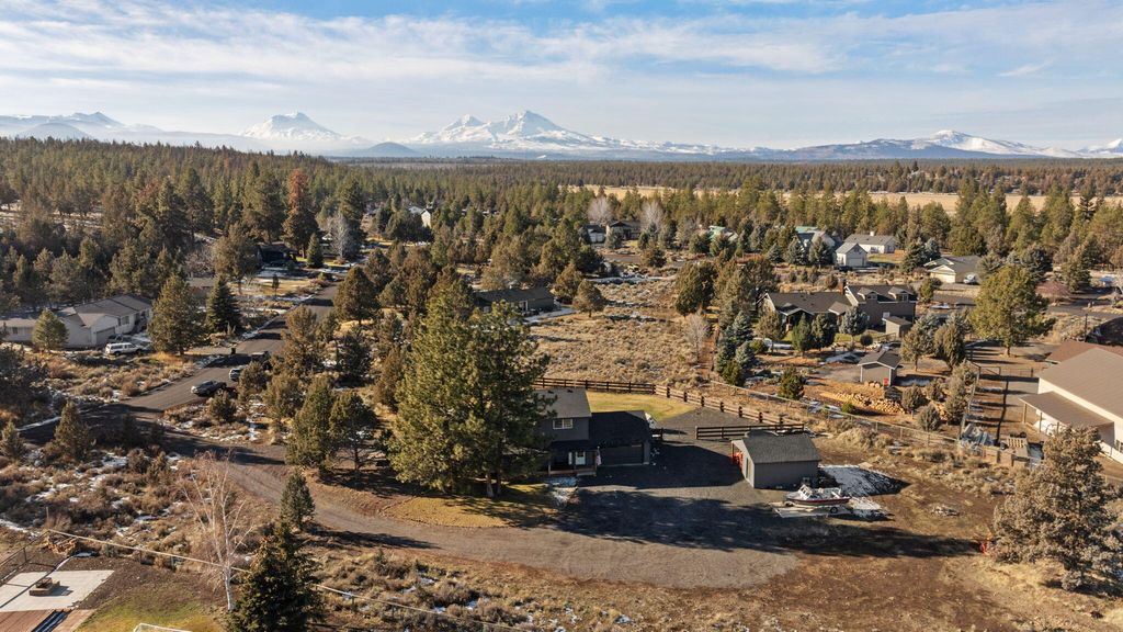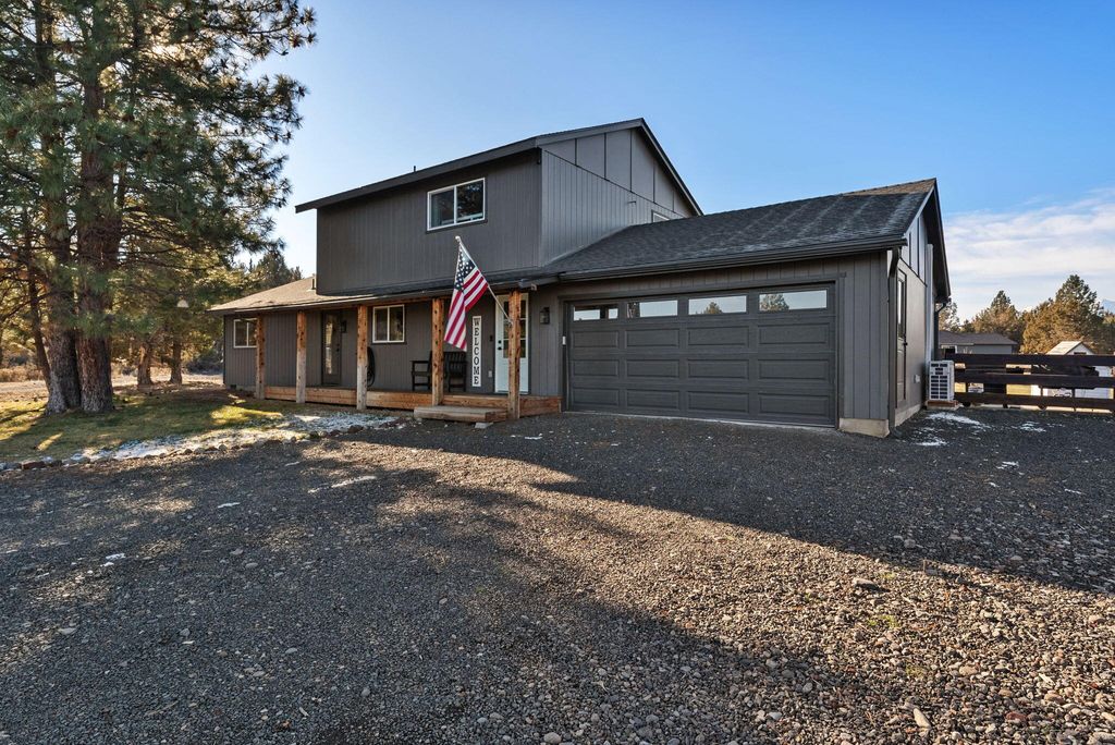 Welcome to peaceful Central Oregon living in the sought-after Ponderosa Cascades community within the Sisters School District, just outside of Sisters on the way to Bend. Set on 1.15 acres, this fully remodeled 1,704 sq ft home blends comfort, function, and mountain charm. Recent improvements include new windows and doors, all new appliances, Cadet heaters, mini split, water heater, garage heater, gas fireplace, flooring, cabinets, bathrooms, decks, storage shed, and irrigation and drip system. Floors and attic are insulated, the roof is approximately 4 to 5 years old, and a new septic tank was installed fall of 2025. The upstairs primary suite offers a private retreat with an additional barn-door bonus room ideal for an office, nursery, or hobby space, plus a large balcony with mountain views. Enjoy a welcoming front porch, a back porch with hot tub, room for RV parking and all your toys, a fenced backyard, and space to relax, entertain, and embrace the Central Oregon lifestyle.