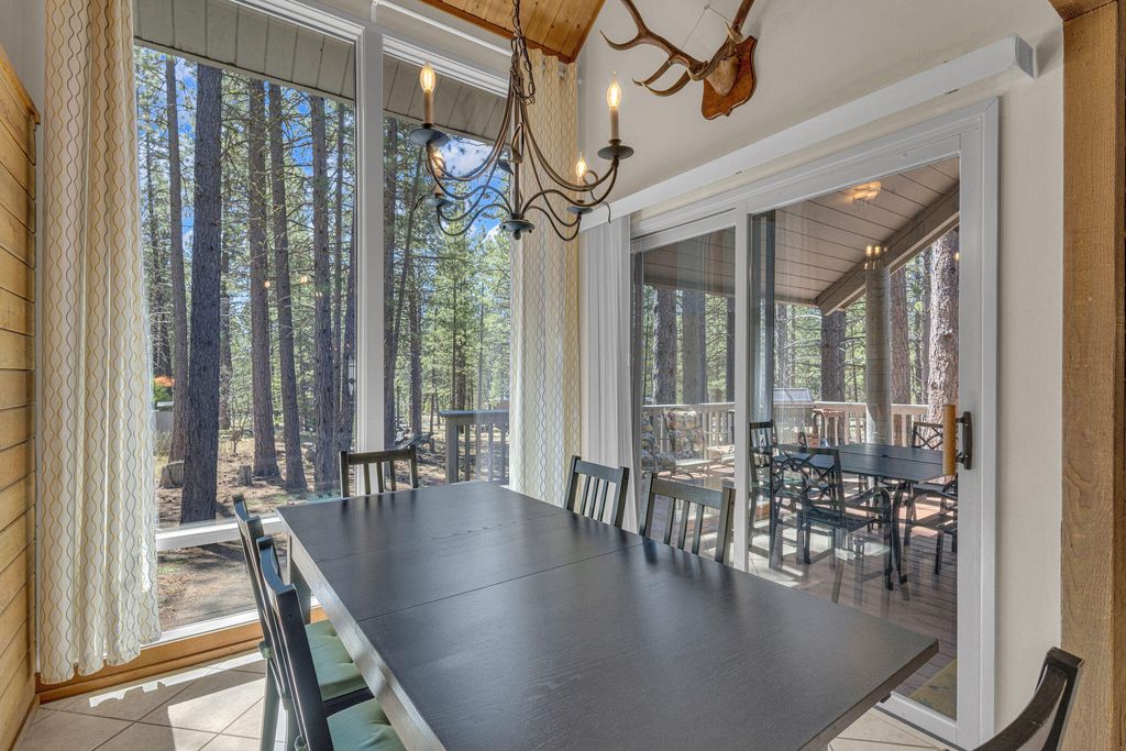 This amazing home Pine Mountain is centrally located in Sunriver and surrounded by beautiful Ponderosa Pines and wonderful common area surrounding the property. Just .5 miles from Fort Rock Park, 2 miles from the Deschutes River and the Village. A 3 bedroom / 2 bathroom Sunriver home that has two wonderful living room/bonus area that makes it perfect for the whole family, kids can enjoy one room and the parents can enjoy the other. On the first floor you will find the primary bedroom, dining space, kitchen, laundry and living room. Upstairs you have two bedrooms, large family room, bathroom and the second bonus room. The back of the home offers a covered deck off the the downstairs living area which is great for BBQing or drinking your morning coffee while watching the animals graze in the back wooded area. There is also a separate deck with a hot tub for you to enjoy and watch the stars. New furnace (Dec-2024) and new hot water heater (Jan-2025), both are under warranty.