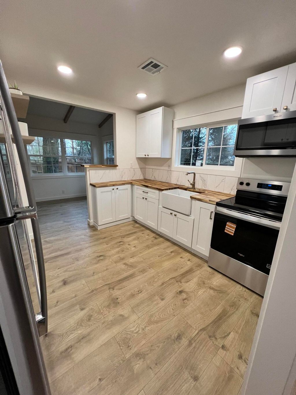 Thoughtfully renovated, this stick-built, move-in ready home features new vinyl windows, a new hot water heater, new roof, new flooring throughout. The refreshed kitchen includes new cabinets, and beautiful butcher- block countertops.