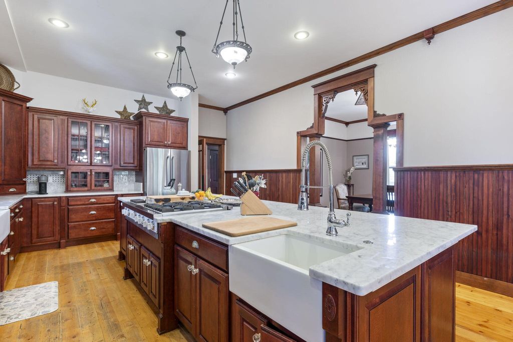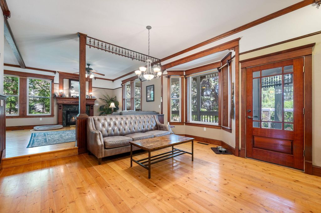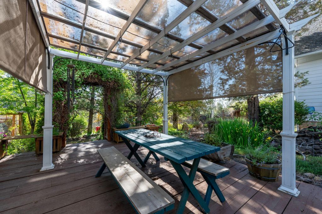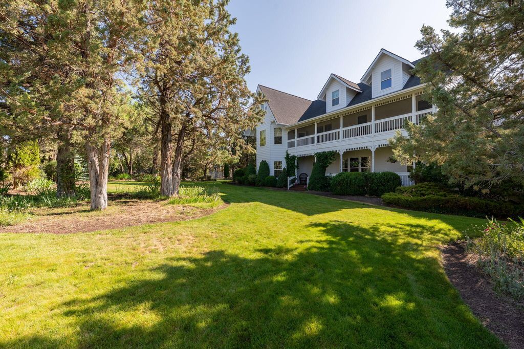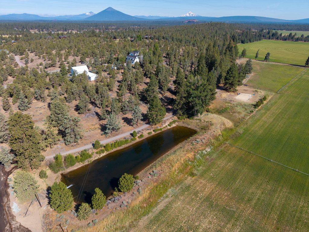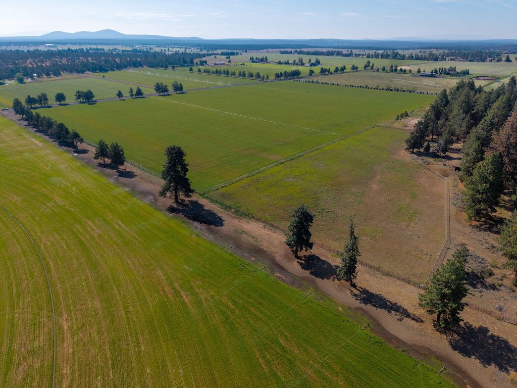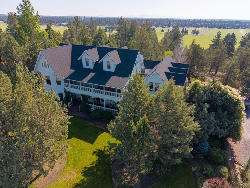 Exceptional 45.6 acre property in Sisters' sought after Cloverdale area with 38.7 acres of pressurized irrigation and Cascade Mountain views from many rooms and front decks/porches. The 4,230 sq. ft. residence includes a 428 sq. ft. finished attic and offers multiple flexible use spaces ideal for multi generational living or private guest quarters. Spaces include an attached studio apartment, library, office, bonus room, parlor, and formal dining room. The main level features a spacious living room, gourmet kitchen with oversized island, full bath, and laundry room. Second level primary suite with en-suite bath and private office, two additional bedrooms, a full bath, and a library. Outdoor amenities include three covered decks, fenced grounds, extensive parking, storage and a machine shed with room for 6+ vehicles. Detached shop offers 14 ft ceilings, a 10 ft overhead door, utility room with hookups, and upper guest quarters.
