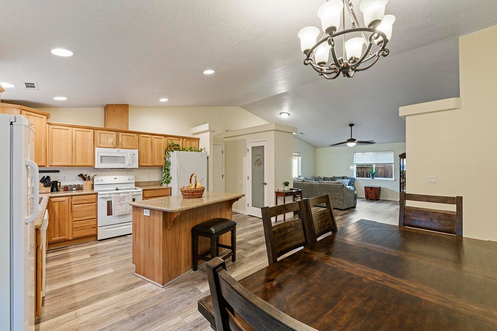 Beautiful 3 bed, 2 bath home featuring an open floor plan and vaulted ceilings that create a bright, airy feel. The kitchen is perfect for entertaining with granite countertops, an island breakfast bar, pantry, and plenty of room for a dining table. Spacious bedrooms throughout, including a primary suite with a walk-in closet. With over 1,400 sq ft of comfortable living space, this cozy home is truly move-in ready. Come tour and fall in love!!!