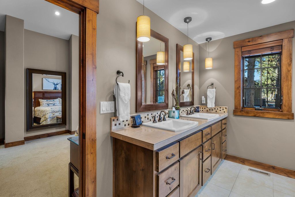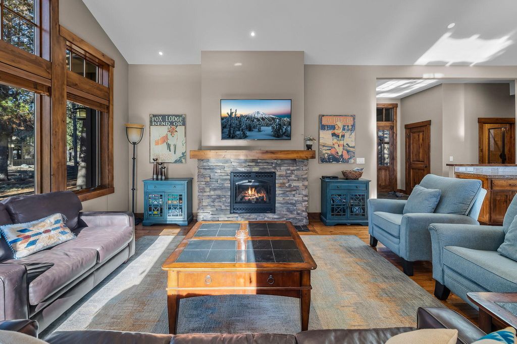 Experience refined resort living in this single-level Caldera Springs Cabin 30 with peaceful lake views and a premier location near the Lake House & Quarry Pool & Fitness Center. Built by Sun Forest Construction, this home blends Northwest craftsmanship with a warm, modern aesthetic. The open-concept design features four bedrooms, including three ensuite retreats, and an upscale kitchen ideal for entertaining. Vaulted ceilings and large windows fill the interiors with natural light and open to a private back patio with hot tub for year-round enjoyment. Recent updates include a newer HVAC system, refrigerator, microwave, television, BBQ, and refreshed furnishings, making this residence truly turnkey. Enjoy access to Caldera Springs amenities including the Forest House and Aquatic Center, golf, pickleball, biking, kayaking, & lakeside dining. Minutes to Bend, Sunriver, the Deschutes River, & Mt. Bachelor, this home offers a rare balance of luxury, privacy, & connection to the outdoors.