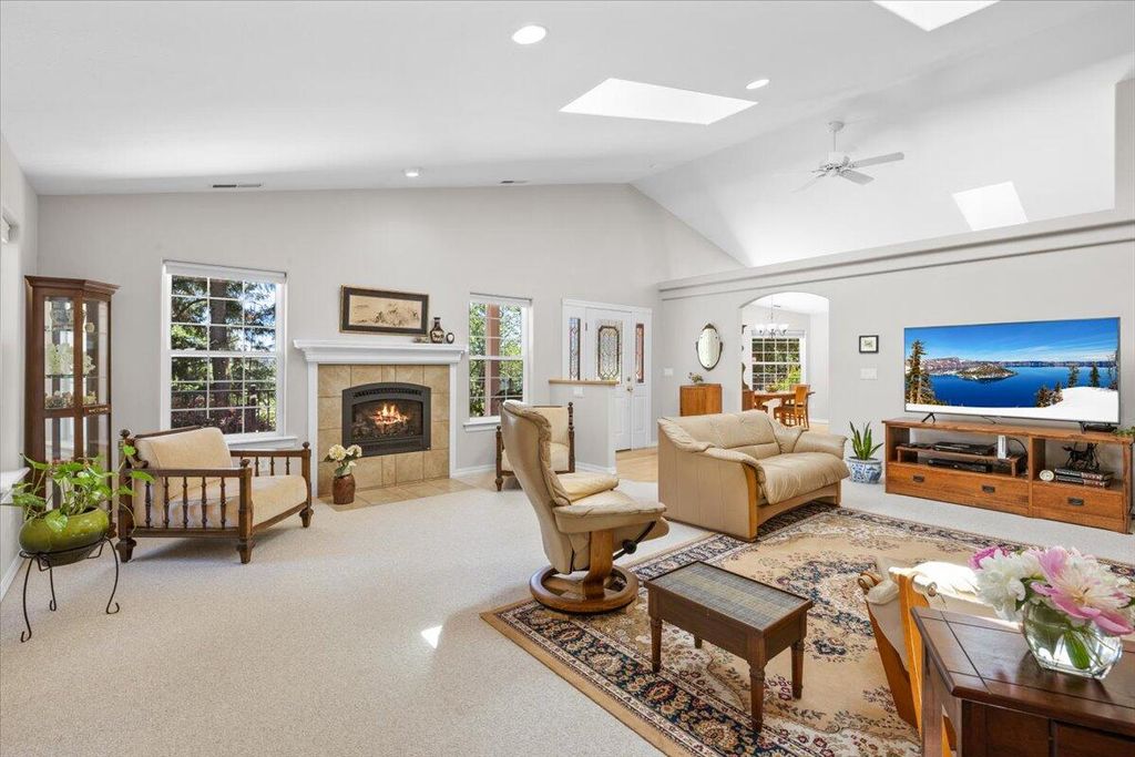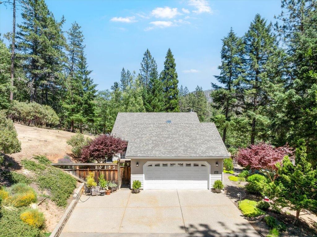 First time on the market! Don't miss this stunning, custom built single level home perched atop a picturesque hillside. Outside you are engulfed by the mountain and valley views from the expansive deck. Inside you are welcomed by gleaming hardwood floors, soaring vaulted ceilings and ample natural light provided by the double pane windows and skylights. The living room hosts a cozy fireplace and flows seamlessly into the large, updated kitchen, complete with stainless steel appliances, a dedicated dinning area, and walk in pantry. This smart floorplan features the primary bedroom, complete with walk-in closet and ensuite on one side of the home, and two generously sized bedrooms plus office and bath on the other. Laundry room and half bath connect the kitchen to the attached 2 car garage. Situated on 5+ acres, this home offers the feel of secluded country living, all while being in a quiet neighborhood just 10 minutes to town. Take a look today!
