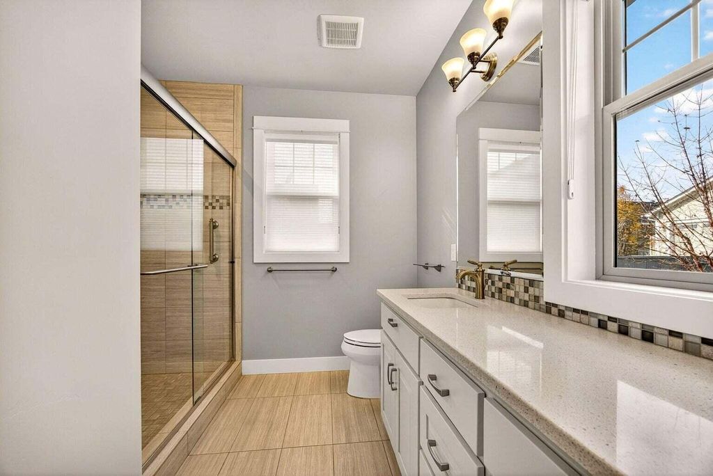 Excellent location across the street from the Summerfield Neighborhood Park! This single-level, Silverton model floor plan has a charming, covered front porch overlooking the park and offers a functional layout. Features include: A gas fireplace with built-ins, vaulted ceilings, plantation shutters, hardwood flooring, quartz countertops, upgraded Kitchen-Aid appliances, tile bathrooms and laundry room, two walk-in showers, a double vanity, and a walk-in closet. A covered, courtyard patio provides a comfortable outdoor space, and there are no steps at either the front entry or the back garage entry of the home. Included in the sale are the refrigerator, washer, dryer, built-ins by the fireplace, and garage cabinets. Earth Advantage Certified building standards for reduced utility costs and energy efficiency.