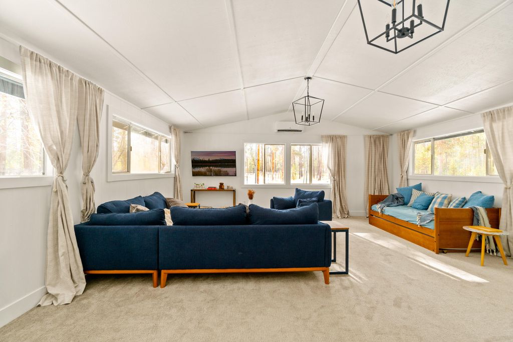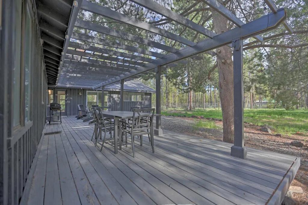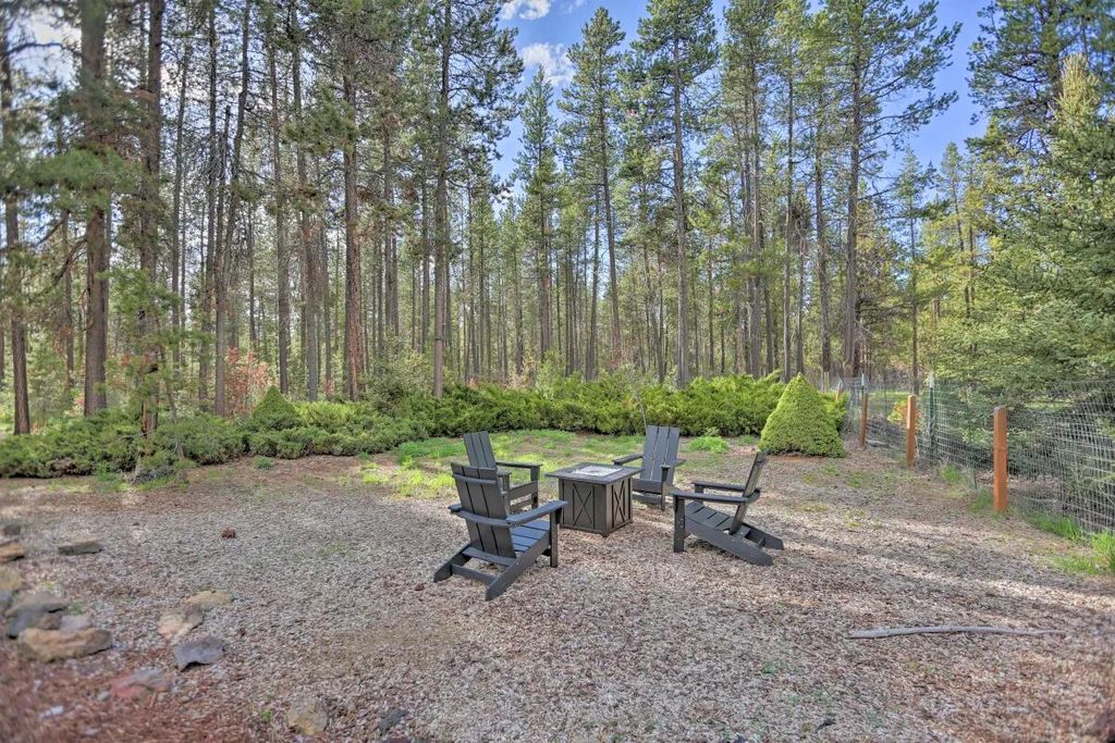 Tucked into a peaceful forest setting on 10 acres, this 3 bedroom single level home offers a luxury feel, privacy, and space just 10 minutes from Sunriver and less than 30 minutes from Bend. Inside,the designer kitchen features quartz counters, tons of storage and is flanked by a large living room and a cozy sitting room with fireplace, making it the perfect space to entertain guests or enjoy cooking family dinner. A 450 sq.ft bonus room provides flexible space for work, guests, or recreation. The attached two-car garage opens into a generous utility/mud room with a Kinetico whole-home water treatment system. Outdoor living shines with a south-facing deck, hot tub, and safari tent offering additional summer sleeping space. A 20x20 storage shed provides ample room for all of your toys and gear. The partially fenced acreage allows plenty of room for pets, recreation, and enjoying the surrounding wildlife. Come enjoy peace and quiet at your Central Oregon retreat.