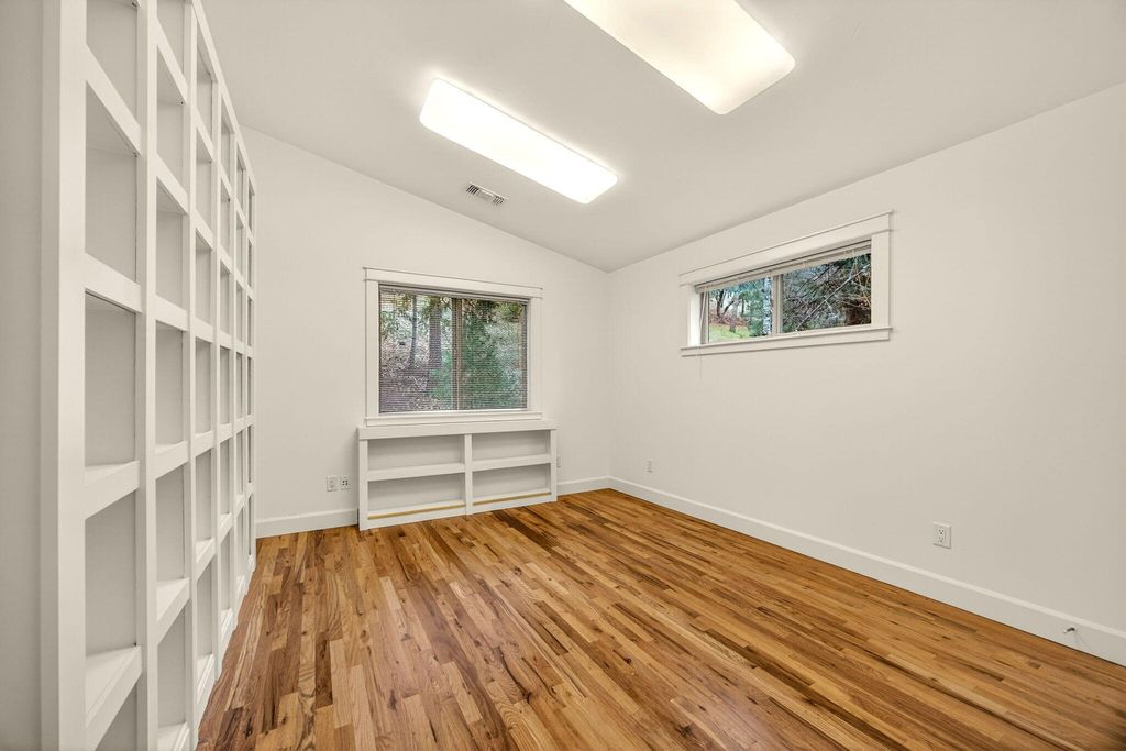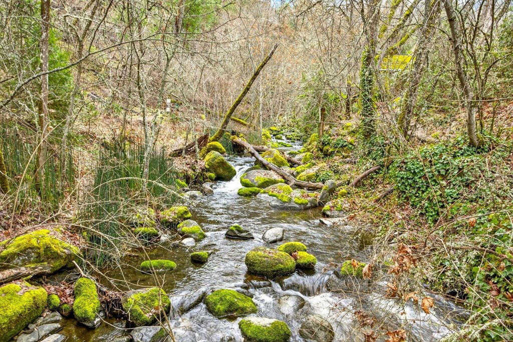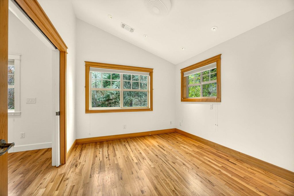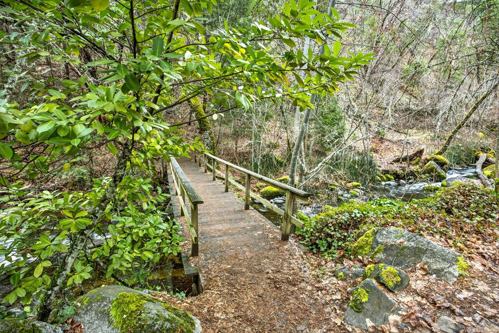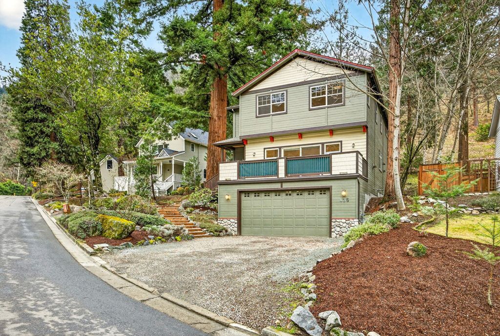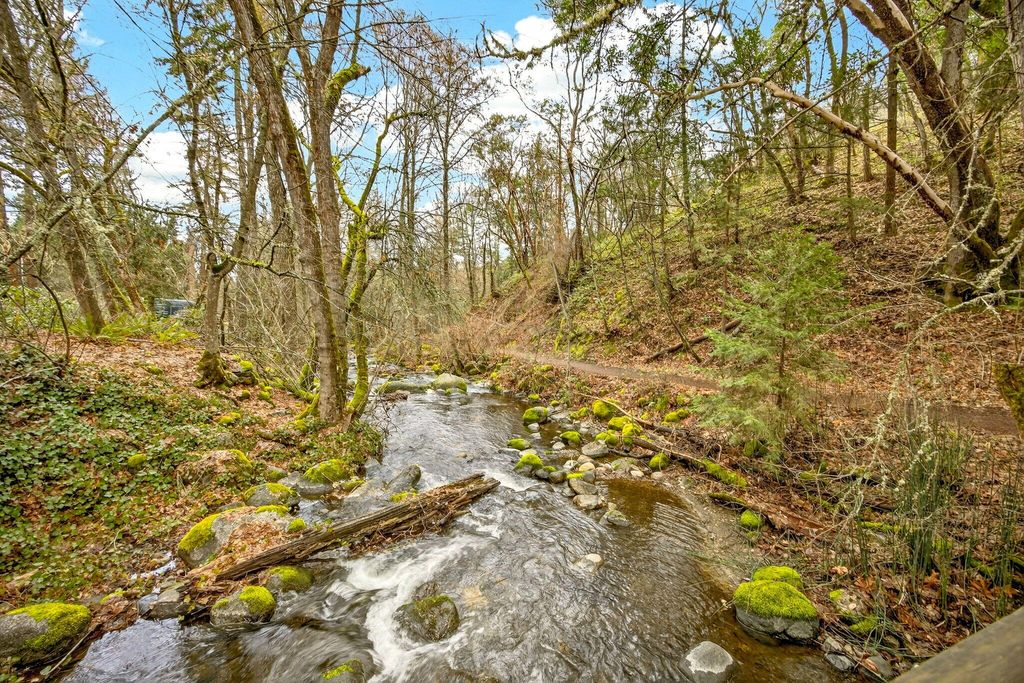 The location is perfect! Contemporary NW craftsman styled home with Lithia Park, Ashland Creek and trails across from your front door. Extensive updates include upgraded hardwood floors and high-end lighting upgrades by Julia Rezek LLC. The high ceilings, vaults and huge windows add to the light filled floor plan. A Jotul enamel gas stove and knotty pine built-in bookcases in the living room creates the ambiance of a retreat in the woods. The kitchen is large and includes a top-of-the-line range with two electric ovens & a five burner gas cooktop & lots of cabinet space. A large dining area off kitchen has slider to outside patio space. Spacious main level deck has privacy screening. Upstairs are spacious bedrooms and baths. The primary suite overlooks Lithia Park & has a sitting room/office and spacious bath. Home is upgraded with superior air filtration system and newer HVAC systems. Sloped back yard includes retaining walls and platform area with electric hookups for hot tub.