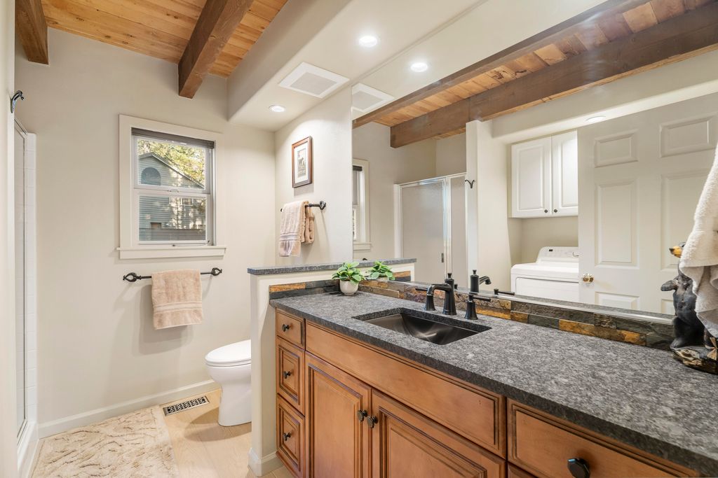 Immaculate Sunriver basecamp! Centrally located, 10 Tamarack perfectly blends lodge charm with modern adventure readiness. The vaulted great room is filled with character, highlighted by distinctive Blue Buggy Pine paneling and a cozy woodstove"”an inviting space to unwind after a day on the slopes or river. The home offers 3 bedrooms plus a versatile loft or optional 4th sleeping area, ideal for hosting guests. Extensive 2024/25 updates elevate the experience with brand-new luxury LVP flooring, plush carpet, and a modernized kitchen featuring new stainless steel appliances, new fixtures, granite countertops in the kitchen and lower-level bathroom, and a rare walk-in pantry. Your gateway to 30+ miles of paved bike paths, this home is built for peace of mind with a new HVAC system (AC ready), water heater, washer/dryer, and smart thermostat. The exterior includes a one car oversized garage with gear storage, covered parking, and is pre-wired for a hot tub. Sold furnished.