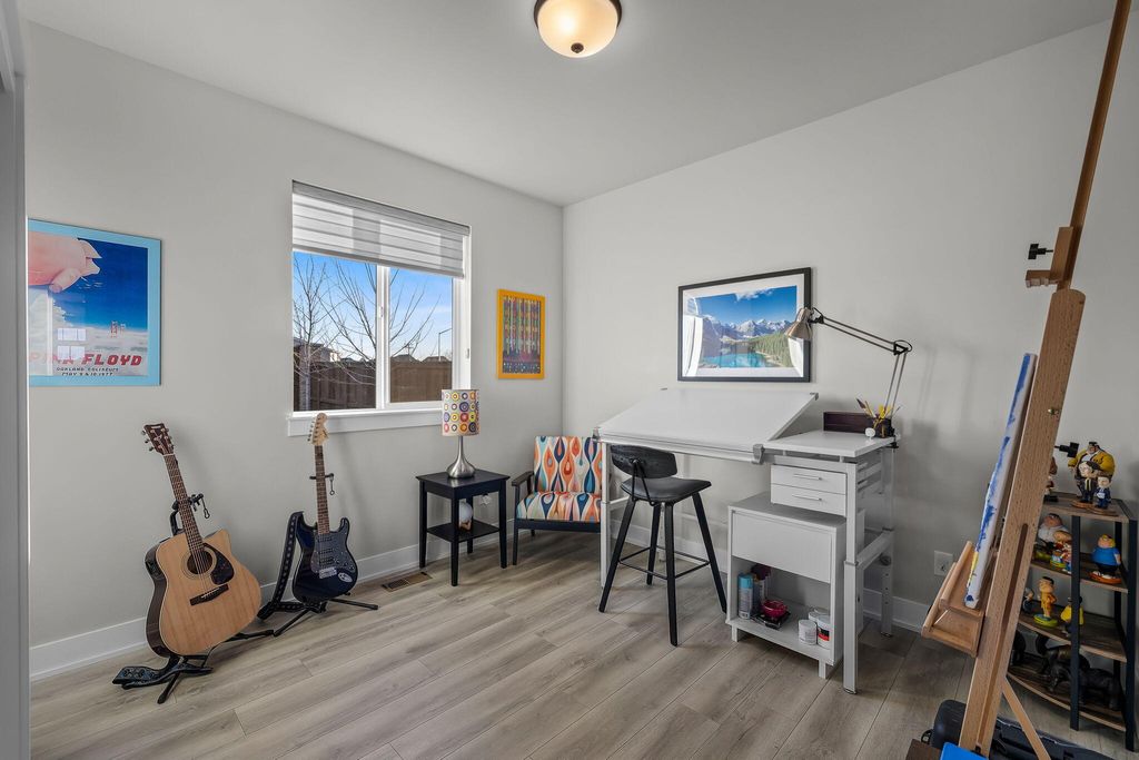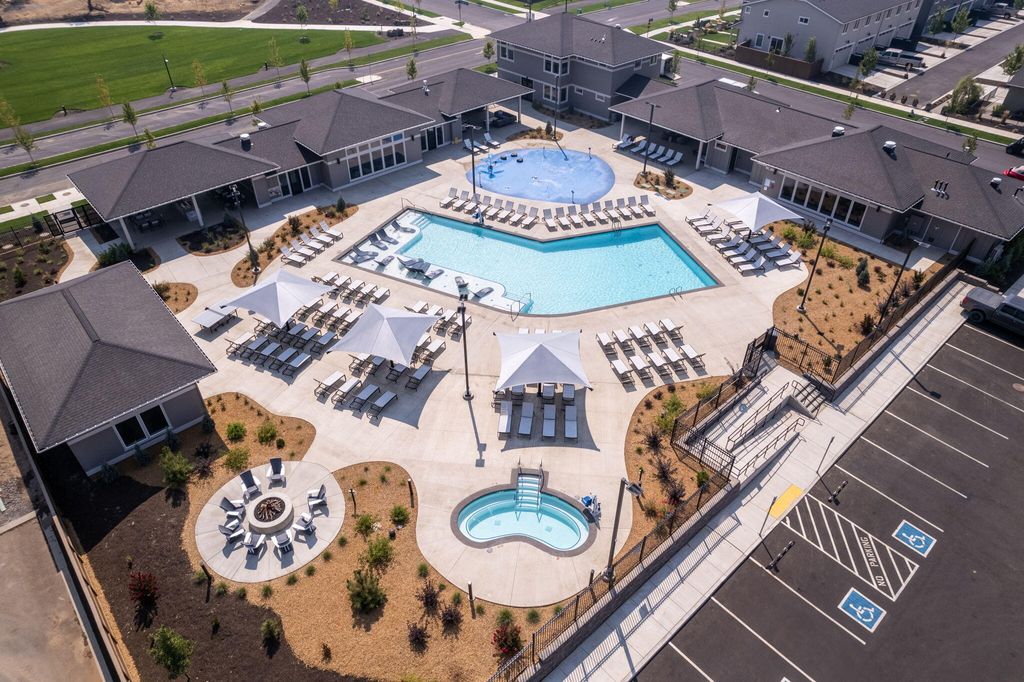Hard to find corner lot home with stunning mountain views in the highly sought-after Petrosa community! This better than new 2 bedroom, 2 bath PLUS den house is move in ready with CUSTOM window treatments, A/C installed and even the refrigerator is included. The open floor plan is a great layout for entertaining with the Cascade Mountains straight out your living room window! The kitchen and bathrooms offer solid Quartz countertops, neutral modern tile backsplash and luxury wood laminate flooring throughout the entire house including the bedrooms that are conveniently tucked away on the backside of the house. Enjoy your professionally landscaped front and backyard with features that include an extended paver patio, raised beds with drip, trees to provide just the right amount of shade. Located in a vibrant community with a clubhouse, pool, hot tub, fitness center, fire pit, free workspace, and a 5-acre part with trails. This home offers comfort, convenience and a lifestyle you'll love