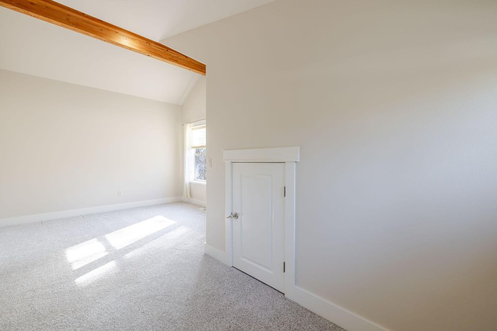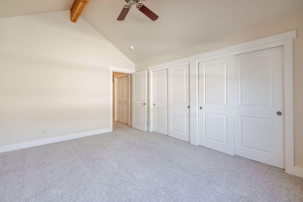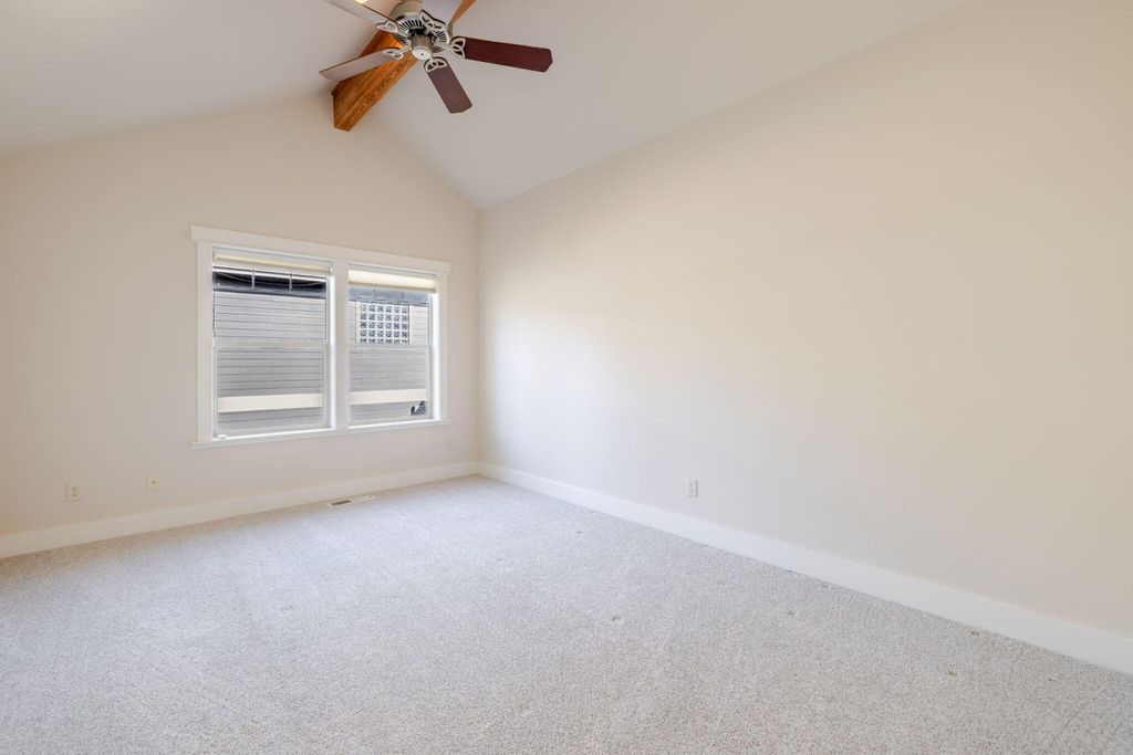 The mainlevel primary suite includes vaulted ceilings and private deck access. Two flex