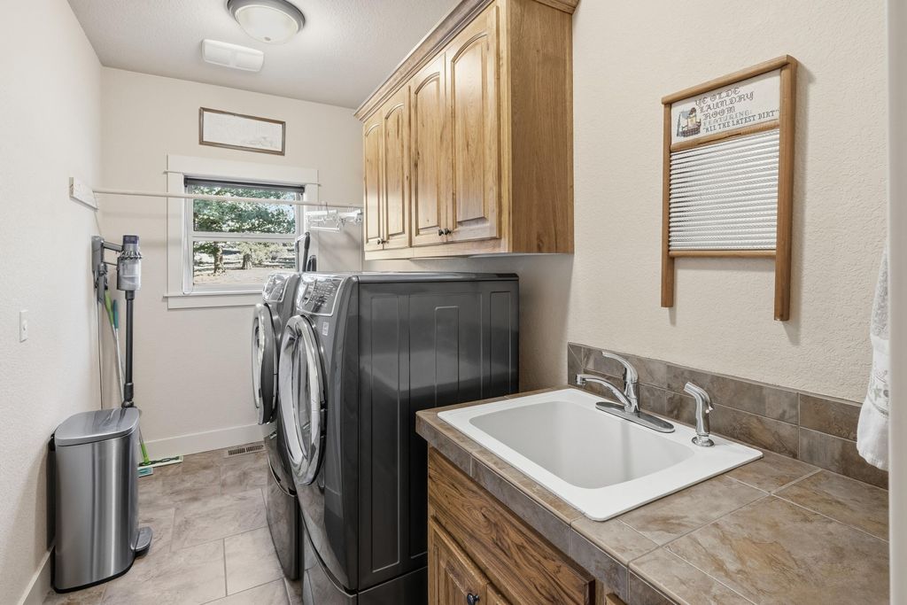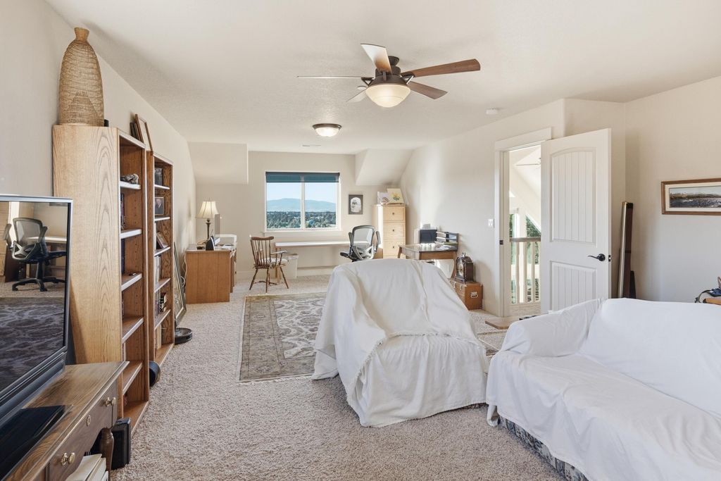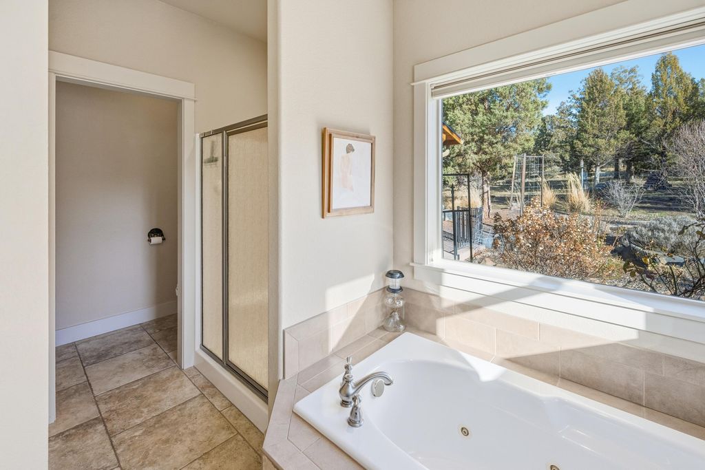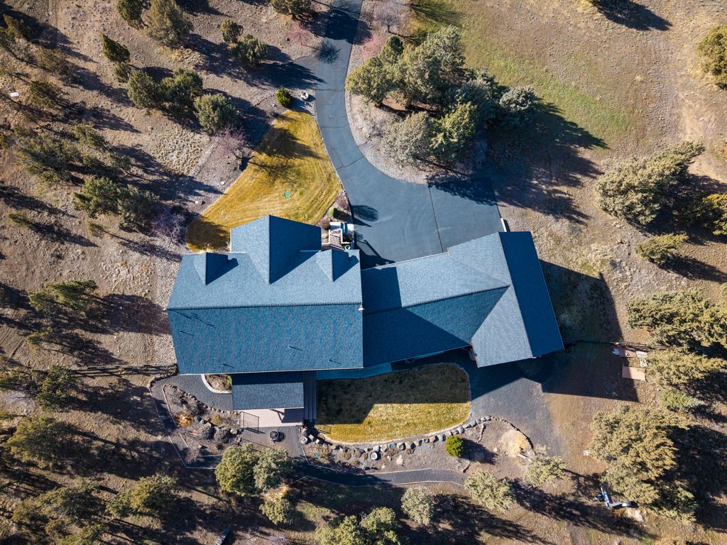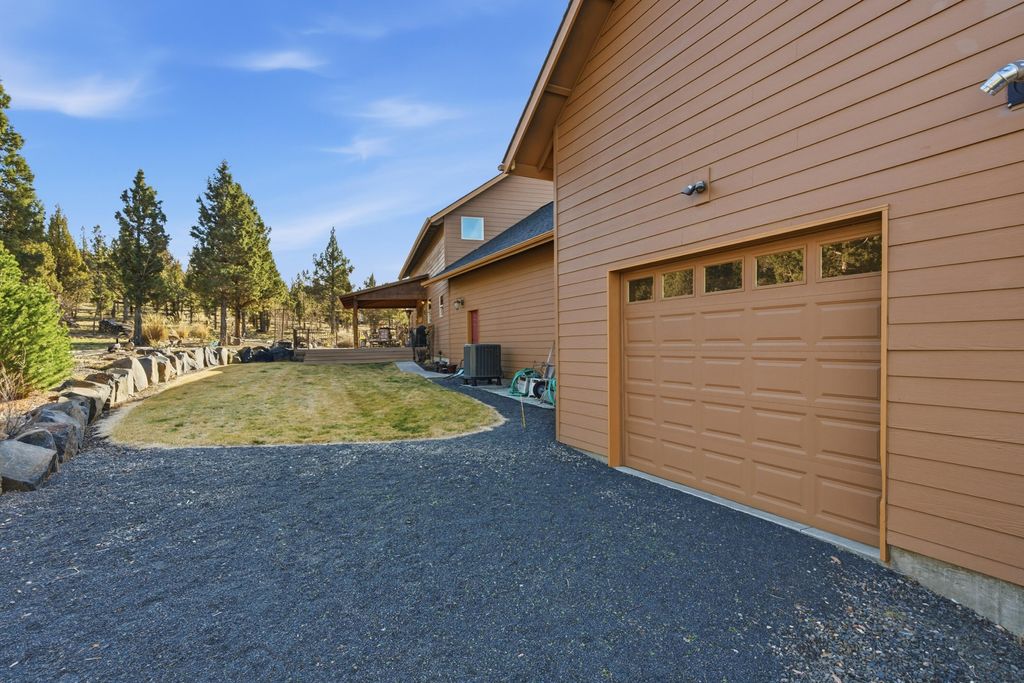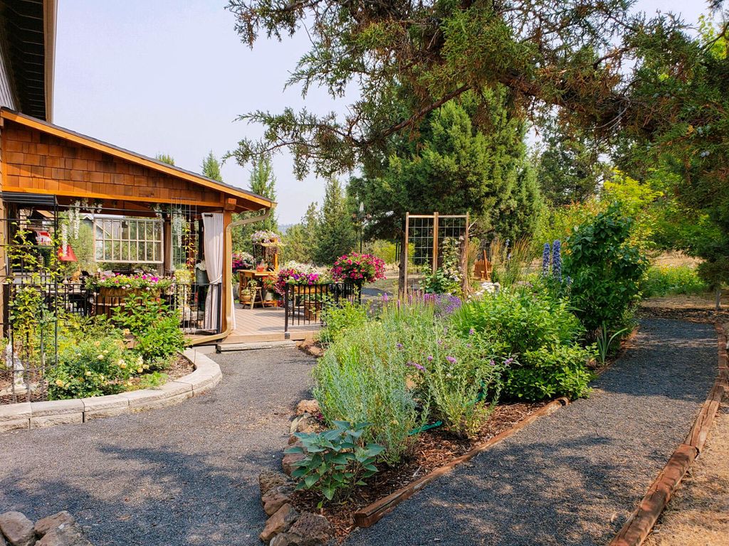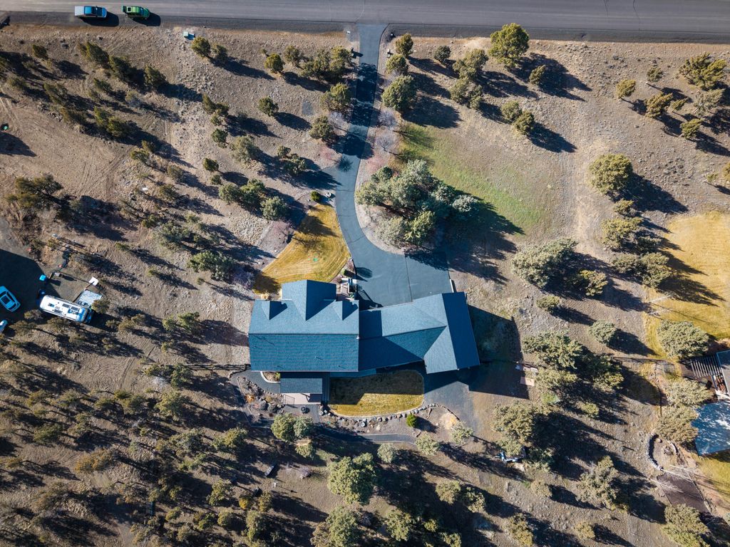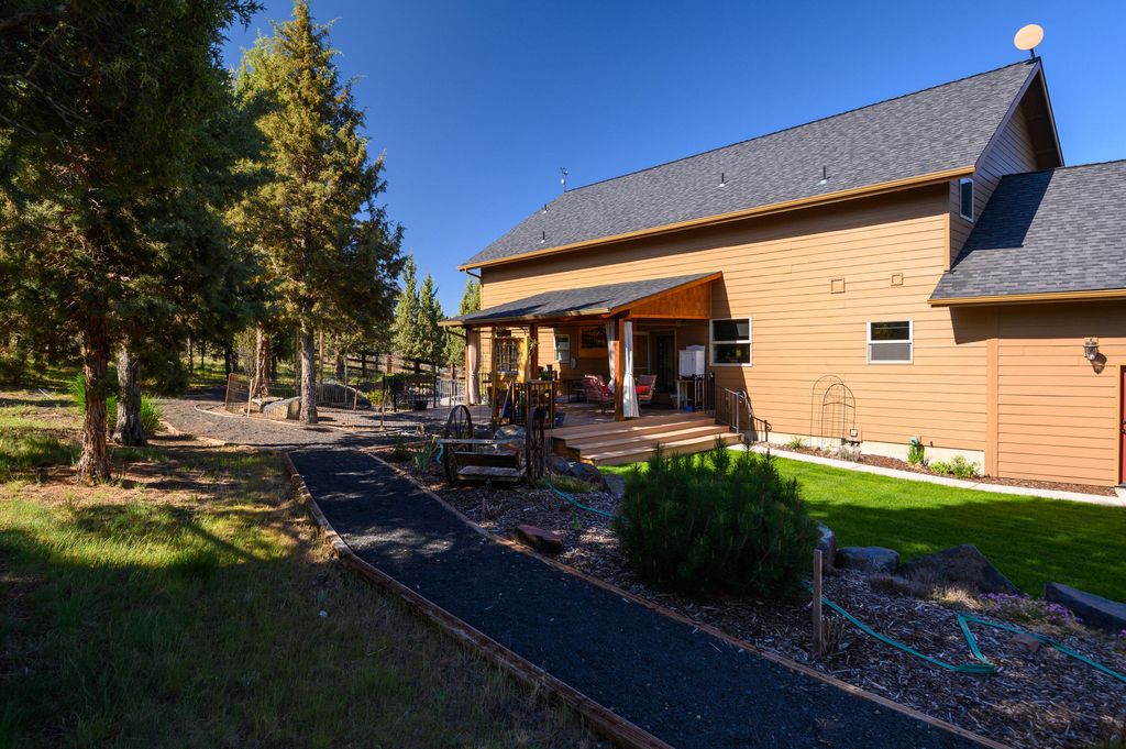 Like new main floor primary custom home on 2acres w/Cascade/Powell Butte views, triple garage, & passthrough RV shop w/access to unbound recreation through thousands of acres of public land! The great room looks west & has a spacious kitchen/dining room featuring brand new slab granite counters, an island w/breakfast bar, new stainless appliances including an oven & adjacent convection microwave, propane cook top w/vent hood, undercabinet lighting, pantry, & hardwood floors. The adjacent mudroom has tile floors, storage, utility sink, & washer/dryer. The primary suite has a view, double vanity, jetted soaker tub, stall shower, well organized walk-in, & toilet room. Upstairs the largest bedroom functions well as a bonus & the other two are large enough to share a room or have a bedroom/media area/office. The big attached triple garage has storage & the RV shop is 33' long w/16' door. The fenced back yard has a covered deck, lawn, landscaping & great privacy.