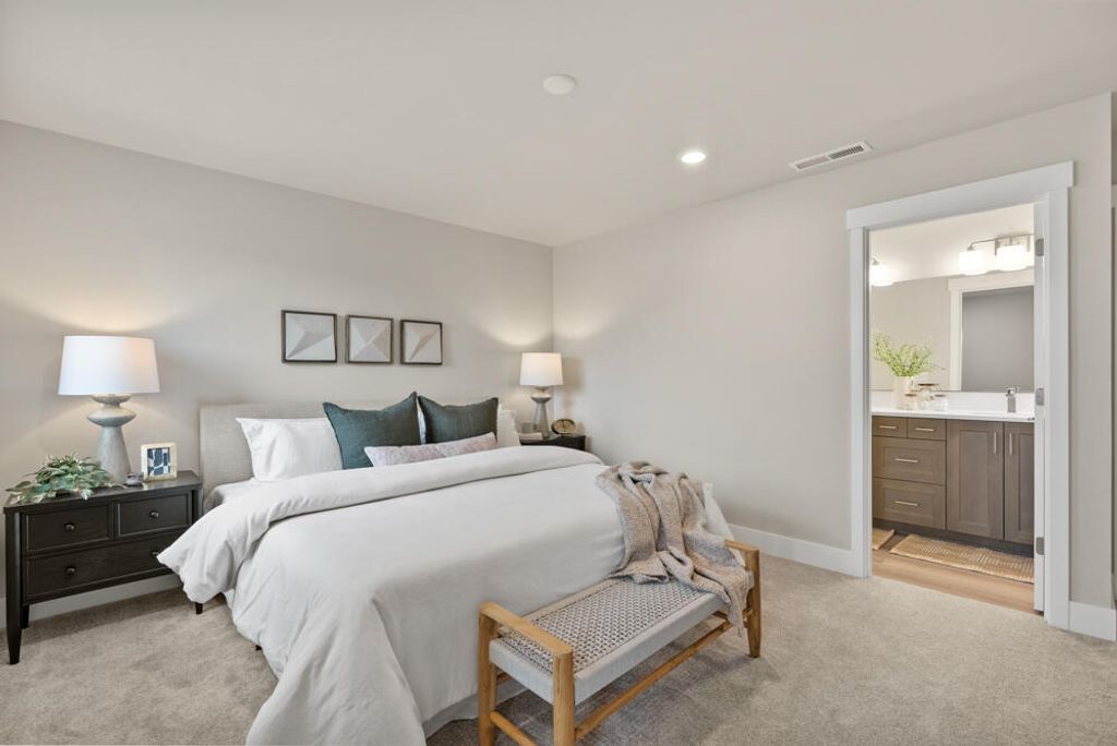 Easton Phase 2 - Homesite #140 - UNDER CONSTRUCTION!! - Live large in this 1,450 sq ft Parkside townhome floor plan built by award winning Pahlisch Homes. This well designed townhome is crafted for modern, easy living. Features include quartz countertops throughout, luxury vinyl plank flooring, a gas fireplace, full tile backsplash in the kitchen and baths, tankless water heater, forced air gas furnace, air conditioning and more. Enjoy effortless upkeep with HOA-maintained front yard. All appliances are included"”Stainless steel range, microwave, dishwasher and refrigerator. Also included are, washer, dryer, and window coverings. Located in Easton, a thoughtfully designed SE Bend community offering green spaces, swimming pools, a gym, and more. Live where convenience meets comfort in one of Bend's most exciting new neighborhoods. Photos are of similar staged home. Buyer bonus available when using builder's preferred Lender. See site agent for details.