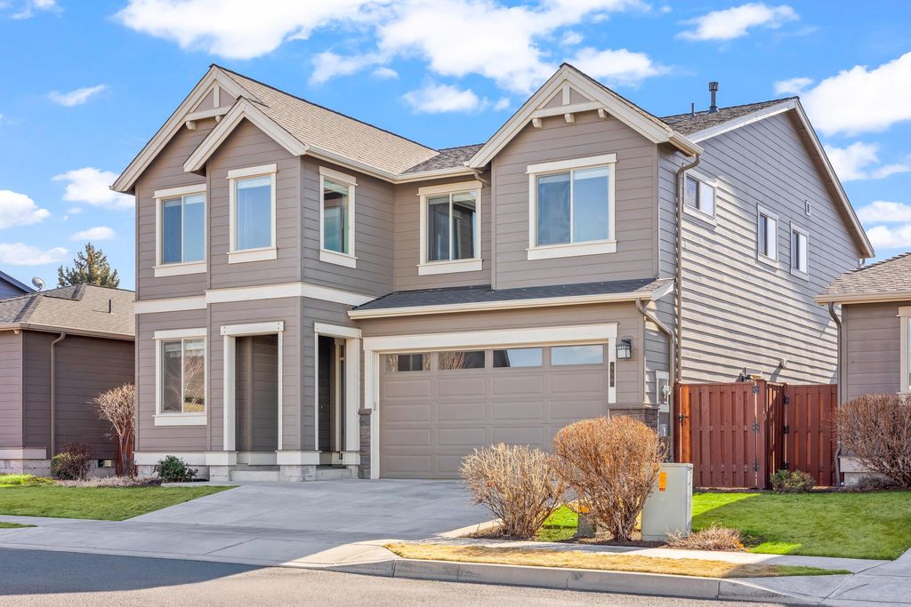 This spacious, stylish, Pahlisch home offers 2,780 sq ft of versatile living space with 4 bedrooms, 3 baths, an office, & a large bonus room or 5th bedroom. Built in 2015, this home features an open-concept design filled with natural light from expansive windows. The great room centers around a cozy gas fireplace, flowing seamlessly into a beautifully appointed kitchen w/black stls stl appliances, quartz countertops, knotty alder cabinetry, a pantry, & plenty of prep and gathering space.Thoughtful updates include LVP flooring, blinds, and ceiling fans, adding both comfort & style. Stay comfortable year-round w/forced air heating, natural gas, & an instant hot water heater. Easy-maintenance backyard complete w/underground sprinklers and a lg covered patio.Enjoy access to community amenities including a pool, parks, and Barnes Butte trails, offering recreation right outside your door. This home truly combines space, function, & lifestyle in one beautiful package.