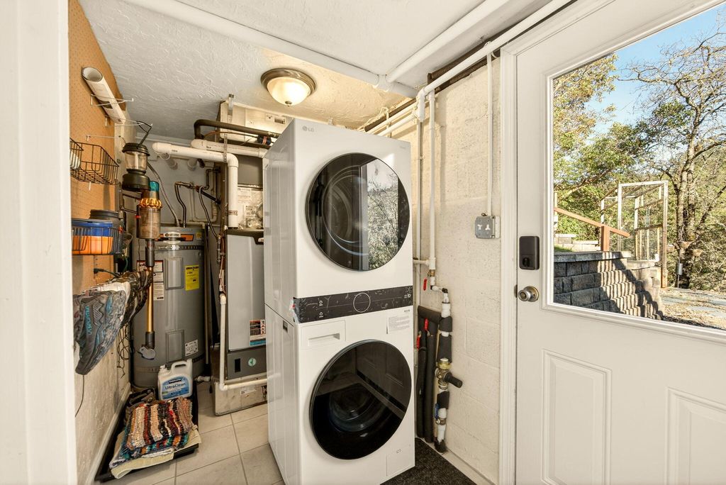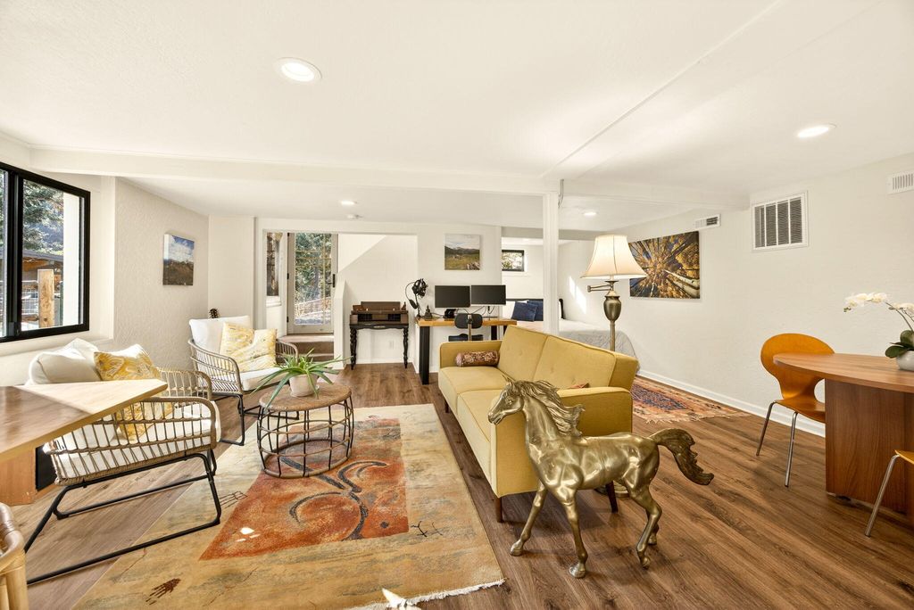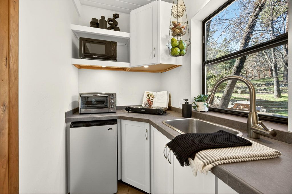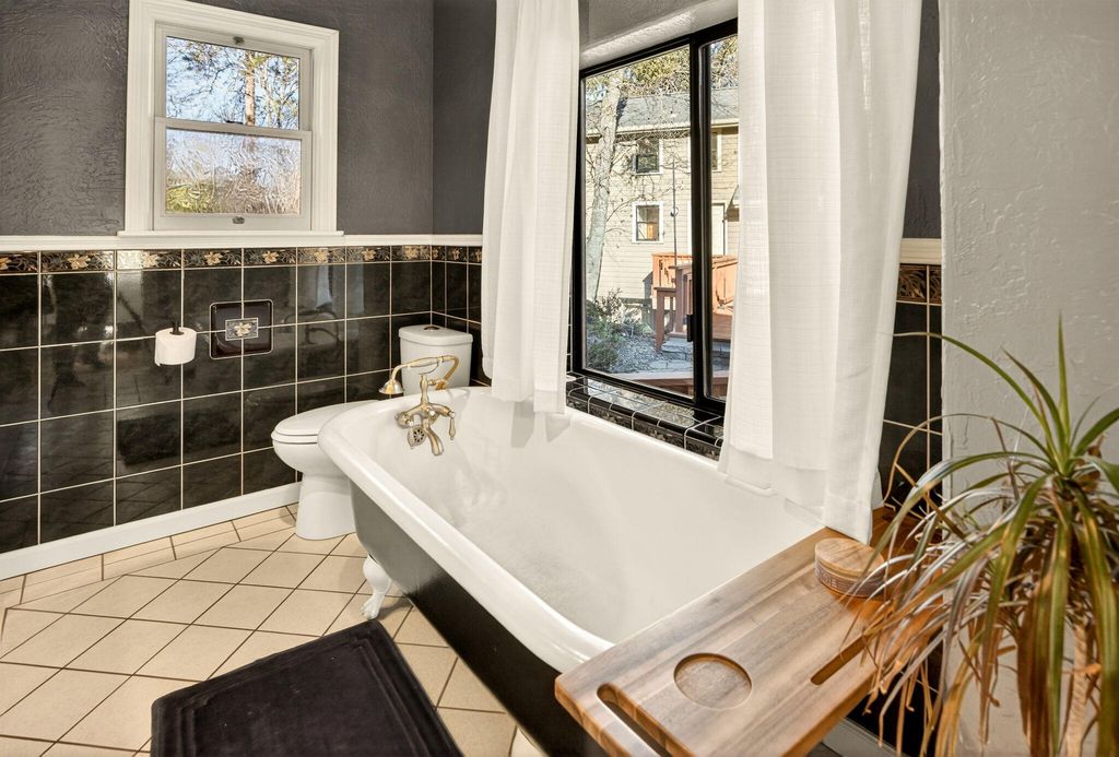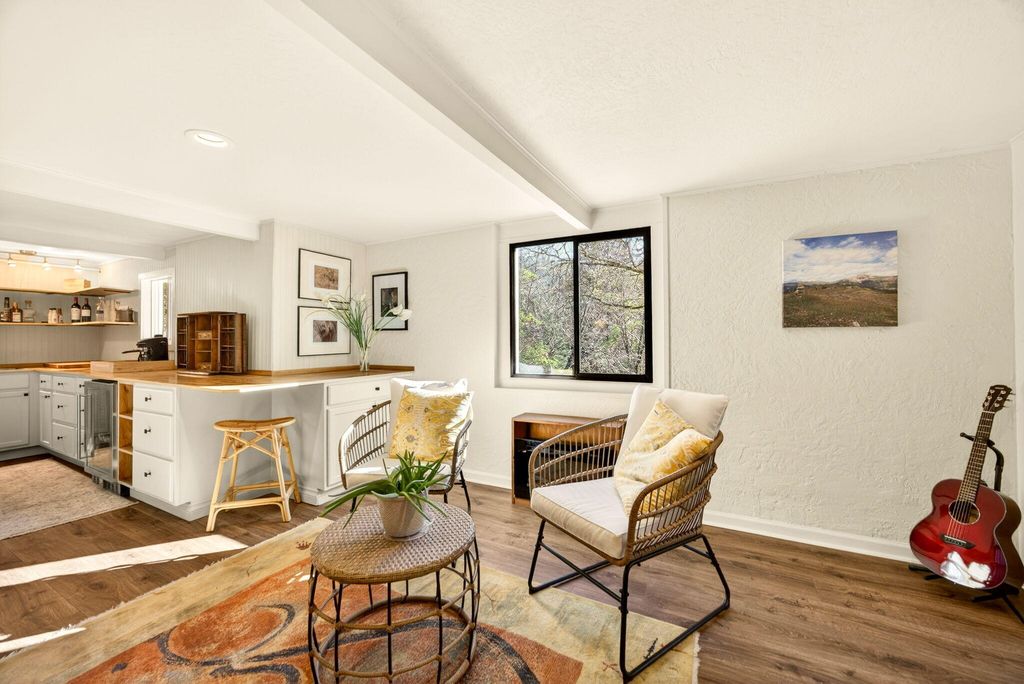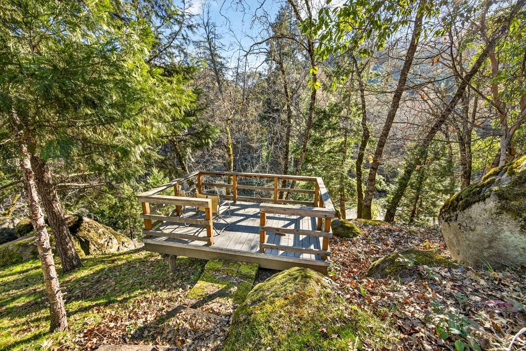 Set just steps from Lithia Park, this mid-century property spans over an acre across 3 tax lots. The light-filled main level features a living room with bamboo flooring, a coffered ceiling, and an electric fireplace. The kitchen includes thoughtful updates and a cozy breakfast nook, while the primary bedroom offers an ensuite bath with a classic clawfoot tub. Upstairs, a 2nd bedroom is paired with a half bath. The lower level provides excellent flexibility with a rec room that can serve as a 3rd bedroom or private in-law suite, complete with a wet bar, wine fridge, full bath with walk-in shower, and its own exterior access. A detached guest house adds further versatility with a kitchenette, full bath, loft, and a lower-level home gym. Three separate decks invite you to take in treetop views and the sights and sounds of Ashland Creek. The fully fenced yard offers space for gardening, pets, or small animals, along with raised beds and views of Grizzly Peak and the Ashland Creek canyon.