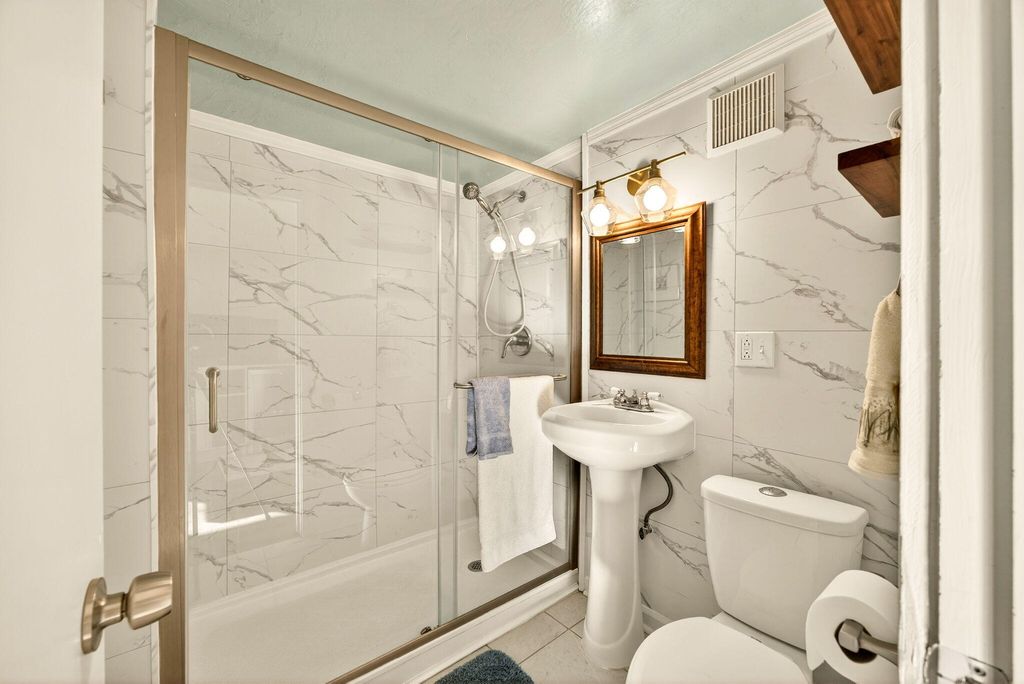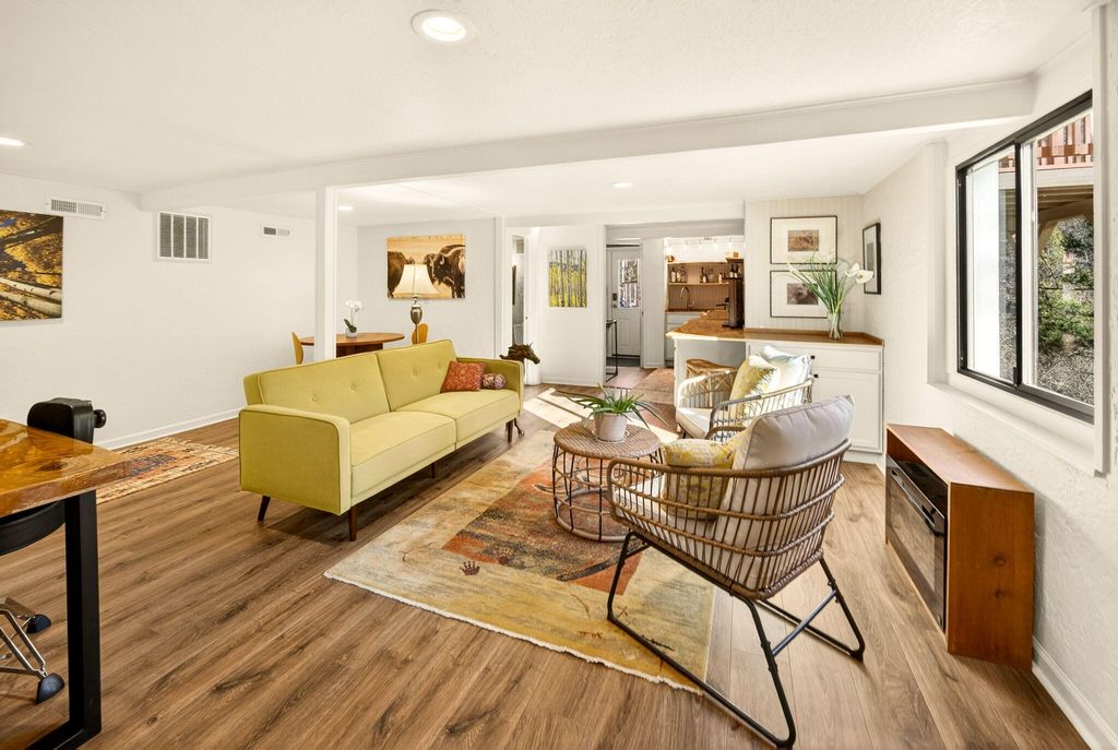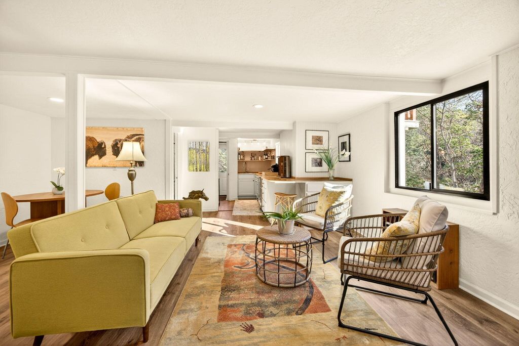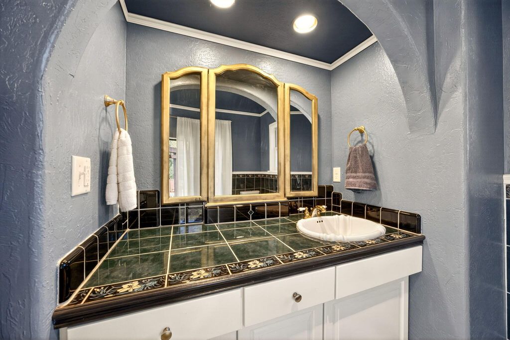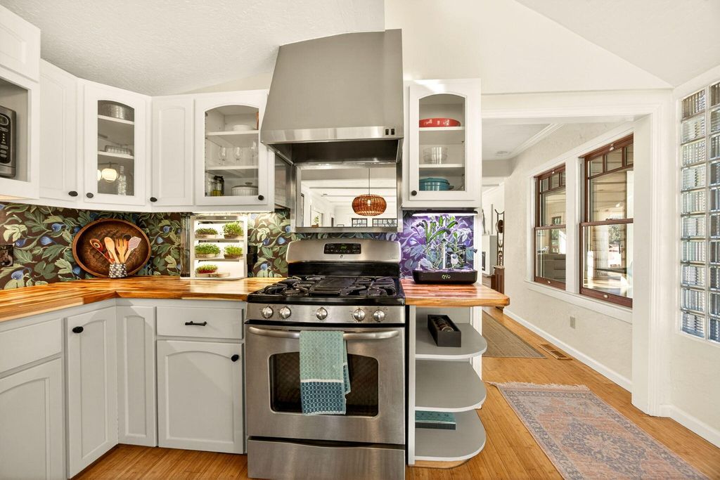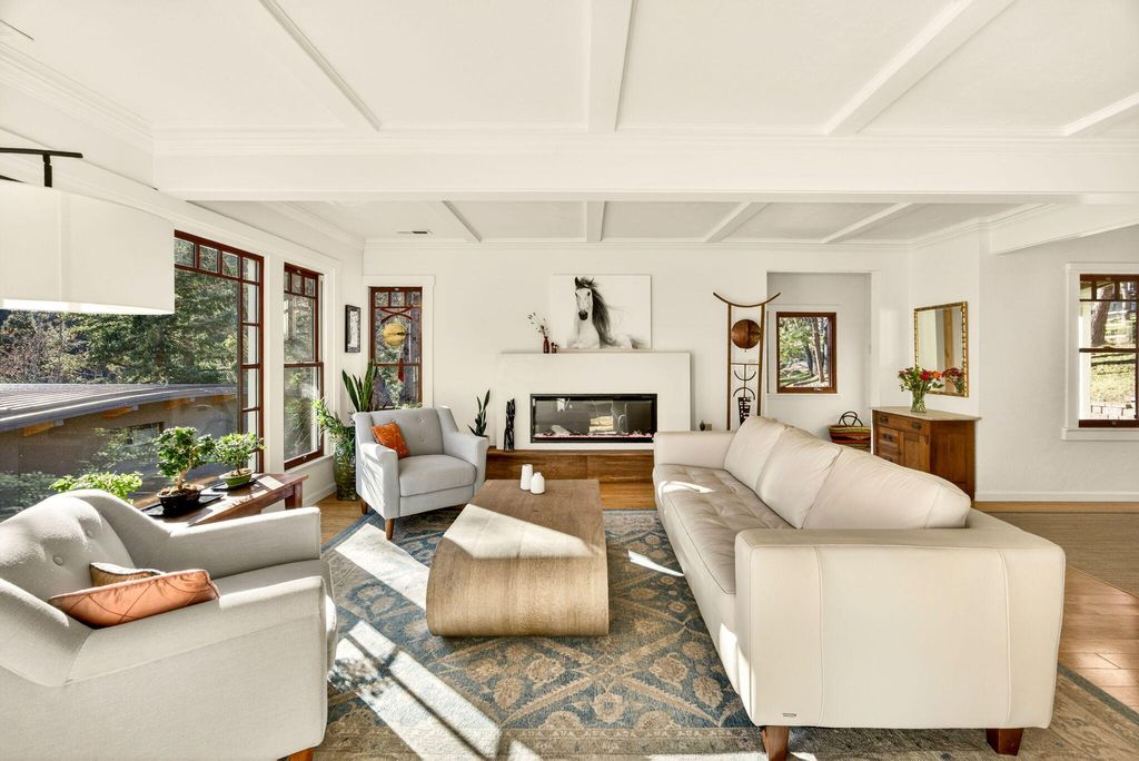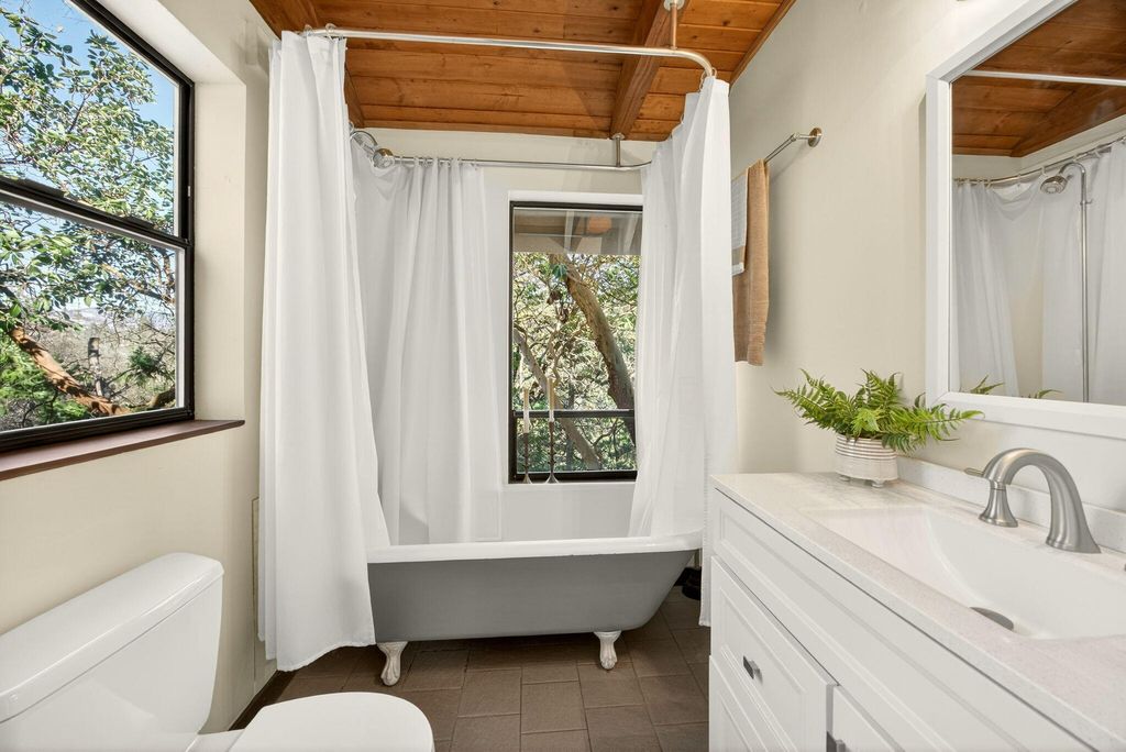 Set just steps from Lithia Park, this mid-century property spans over an acre across 3 tax lots. The light-filled main level features a living room with bamboo flooring, a coffered ceiling, and an electric fireplace. The kitchen includes thoughtful updates and a cozy breakfast nook, while the primary bedroom offers an ensuite bath with a classic clawfoot tub. Upstairs, a 2nd bedroom is paired with a half bath. The lower level provides excellent flexibility with a rec room that can serve as a 3rd bedroom or private in-law suite, complete with a wet bar, wine fridge, full bath with walk-in shower, and its own exterior access. A detached guest house adds further versatility with a kitchenette, full bath, loft, and a lower-level home gym. Three separate decks invite you to take in treetop views and the sights and sounds of Ashland Creek. The fully fenced yard offers space for gardening, pets, or small animals, along with raised beds and views of Grizzly Peak and the Ashland Creek canyon.
