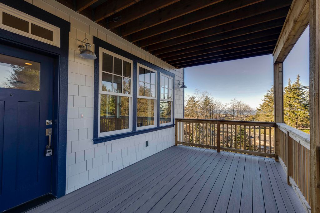 Bordering protected open space, this short term rental friendly home offers a light-filled perspective on coastal luxury within the Whale Watch neighborhood of Depoe Hills. The residence is defined by its connection to the Pacific, featuring two expansive decks positioned for ocean views and front-row whale watching. Inside, the main level serves as a bright and airy social hub, where the kitchen and living areas flow naturally toward the outdoors. The upper level has three beautifully appointed bedrooms including a primary suite with its own, sizable private viewing deck. On the ground floor, a versatile flex room provides the quietude necessary for a home office or media retreat. Finished with crisp, contemporary materials and energy-efficient systems, this short-term rental friendly home sits just minutes from the world's smallest harbor. It is a sophisticated haven that captures the rugged beauty of Depoe Bay while maintaining the polished comfort of a premier planned community.
