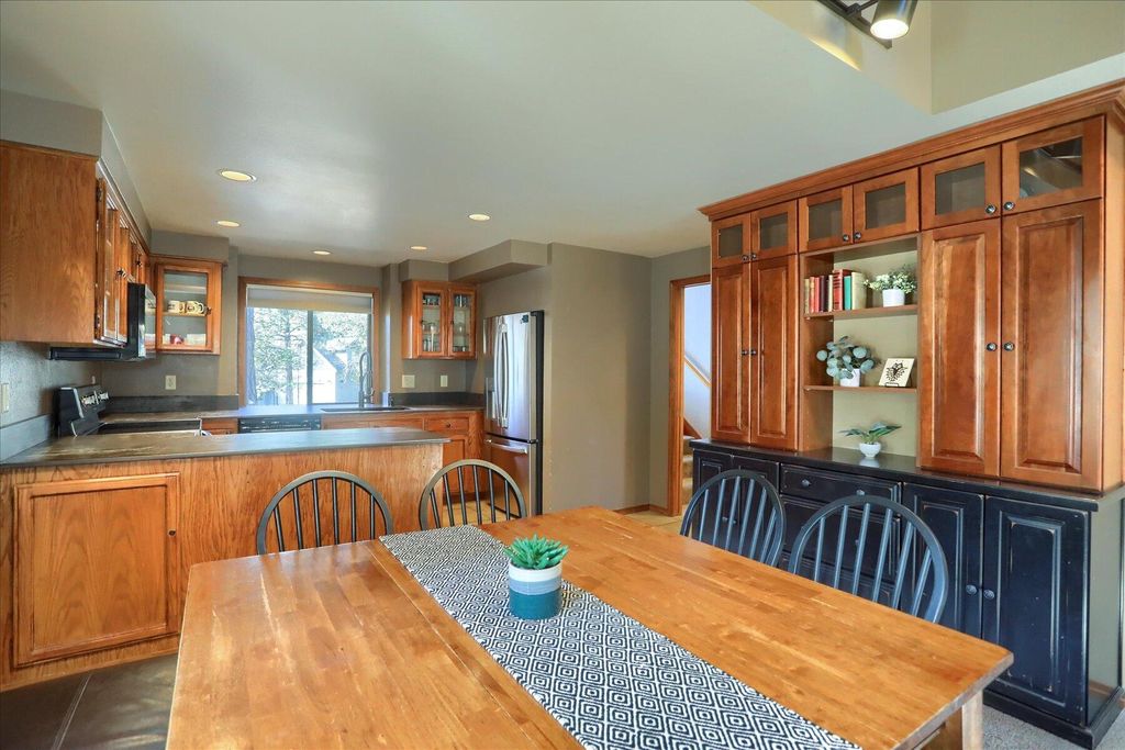Amazing location! Red Fir 6 sits adjacent to SHARC & just a short walk to Sunriver Village, making it ideal as a full-time residence, second home, or vacation rental, with strong short-term rental history. Meticulously maintained and fully furnished, this home features a recently updated kitchen with new countertops and stainless steel appliances. The desirable open floor plan offers great flow, with the primary suite on the main level. Upstairs includes two spacious bedrooms, including a loft bedroom with a large closet, plus a bright full bathroom. The vaulted great room showcases a wood-burning fireplace insert, skylights, & floor-to-ceiling windows for abundant natural light. Enjoy peaceful wildlife views from the north-facing deck or relax in the newer private hot tub. Additional highlights include an oversized one-car garage, metal roof, 10x12 storage shed, & newer skylights, furnace, and A/C. Enjoy SHARC access, 45 miles of paved trails, sports courts, and private boat launch.