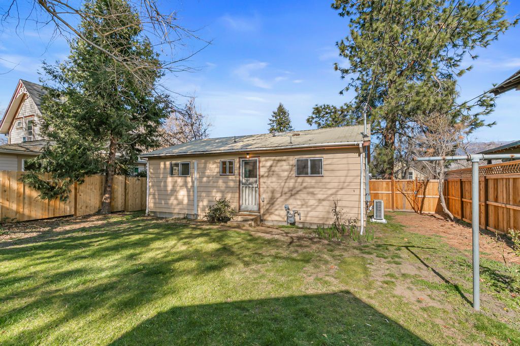 Charming midcentury bungalow and guest cottage on a spacious 0.15-acre lot with alley access located in the heart of Ashland's historic Railroad District! Main home with new ductless mini-split heating and AC, refinished solid oak hardwood and new waterproof vinyl tile floors, living room with abundant natural light, two bedrooms, one full bathroom with tub shower, kitchen with gas range oven and refrigerator, adjacent dining area, and pantry mudroom with laundry hookups. Detached cottage with separate fenced yard, three private parking spaces, vaulted living and bedroom with wood-paneled ceilings and skylight, ductless mini-split heating and AC, enclosed porch, kitchen with dining counter, Viking gas range oven, refrigerator, and full bathroom with shower. Detached storage shed, mature trees, and grass lawns. Inquire for details!