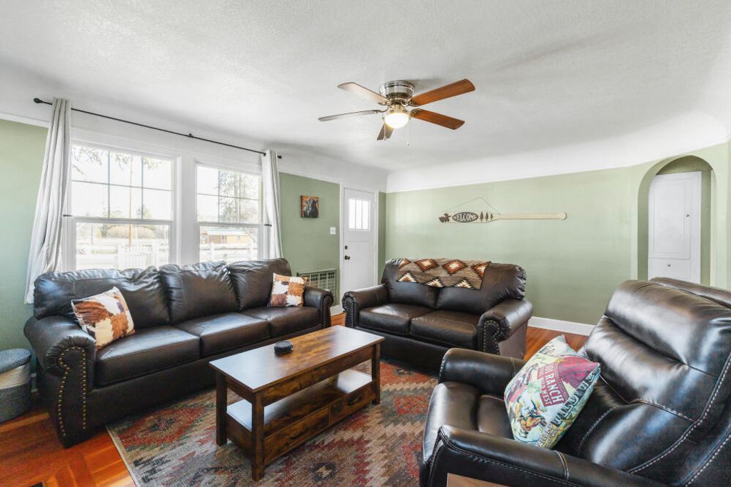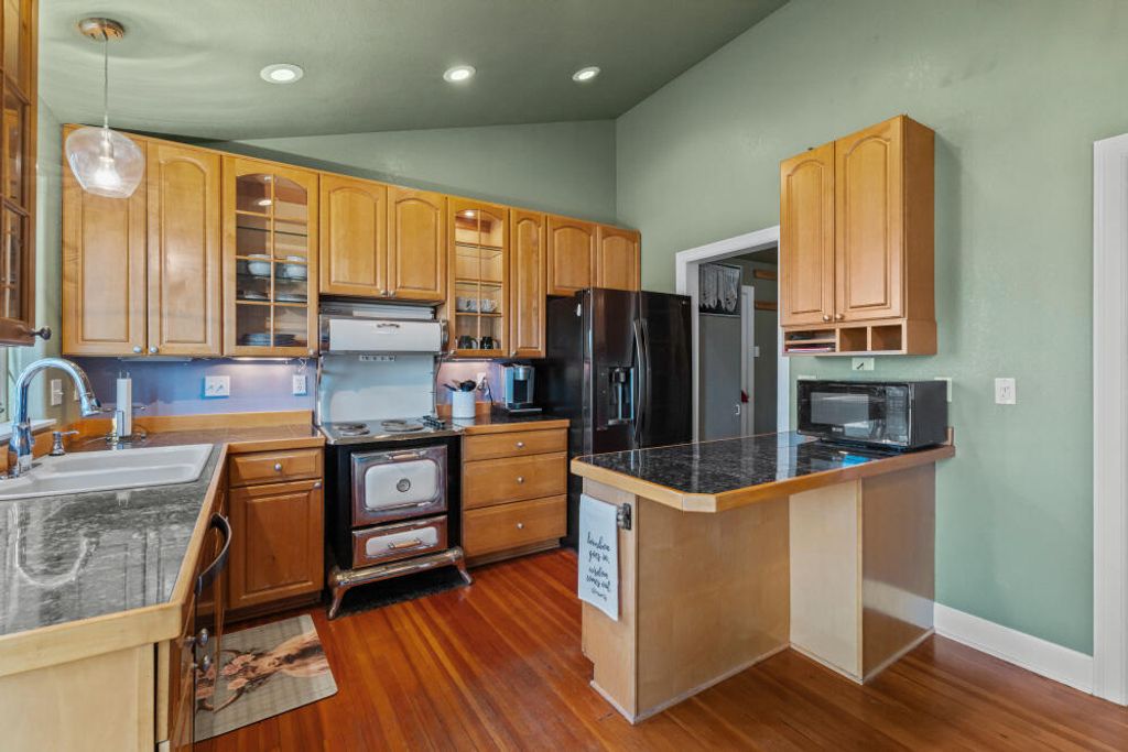 Rare, beautifully updated home on 2.14-acres in historic downtown Fort Klamath, OR. This 2-bedroom, 2-bath residence features fresh interior paint, abundant natural light, and upgrades uncommon to the area. A chef's kitchen with ceramic tile counters, breakfast bar, custom maple cabinetry with accent lighting, and a vintage-style Heartland convection range. West-facing sliding glass doors lead you onto the deck from the dining area for relaxing environment with full view of Crater Lake's Mt Mazama (now, the deepest lake in the U.S.) A spacious primary suite also leads you to the deck for the same west-facing view. Preserved character includes coved ceilings and rounded doorways, decorative shelving, and a classic swinging hallway door. Primary bath offers a thick-glass walk-in shower and jetted soaking tub.
