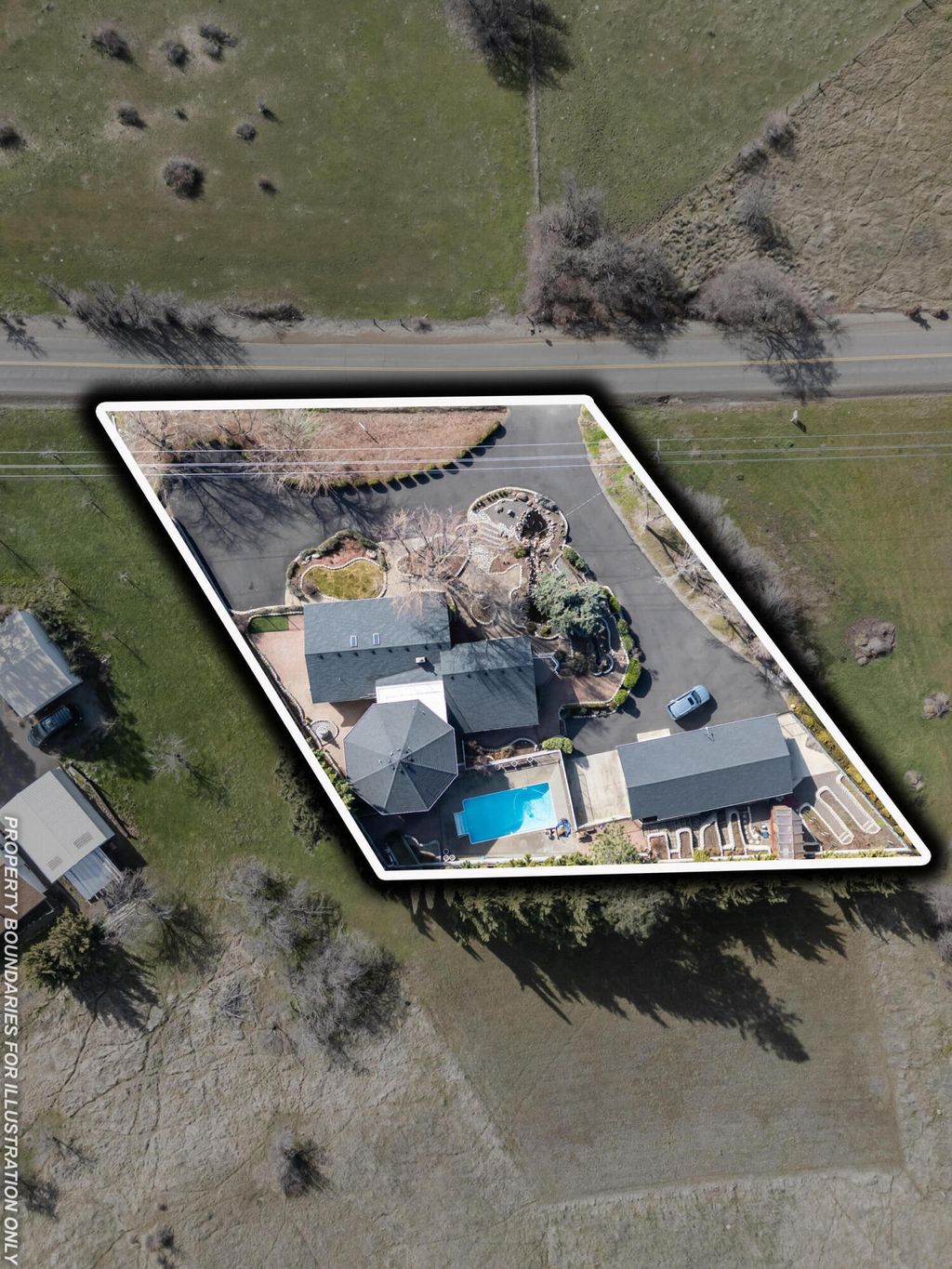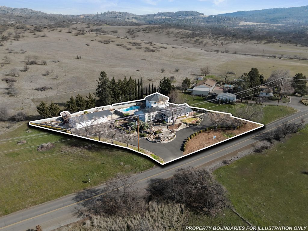 *OPEN HOUSE* 2/21 Noon-2PM. Breath-taking panoramic valley views set the stage for this exceptional 4,226 SF East Medford estate set on a total of 7.48 acres. The home at 4935 Cherry Ln and adjoining lot (0 Cherry Ln TL #2200) are being offered together as a package deal. Thoughtfully designed, the home offers 3 bedrooms plus a office or 4th bedroom w/ custom built-ins & 4.5 bathrooms. The open-concept kitchen features a large island, breakfast bar & expansive walk-in pantry w/ built-in shelving. Vaulted ceilings elevate the dining area as it overlooks the sweeping valley below. A versatile bonus suite w/ full bath & private entrance is ideal for multigenerational living. The split-level design leads to a grand upper-level primary retreat w/ sitting area & direct access to the sparkling in-ground pool. Lush landscaped grounds include a waterfall feature, pond, greenhouse, raised garden beds, RV parking, and a detached 3-car garage w/ workshop"”creating a truly extraordinary retreat