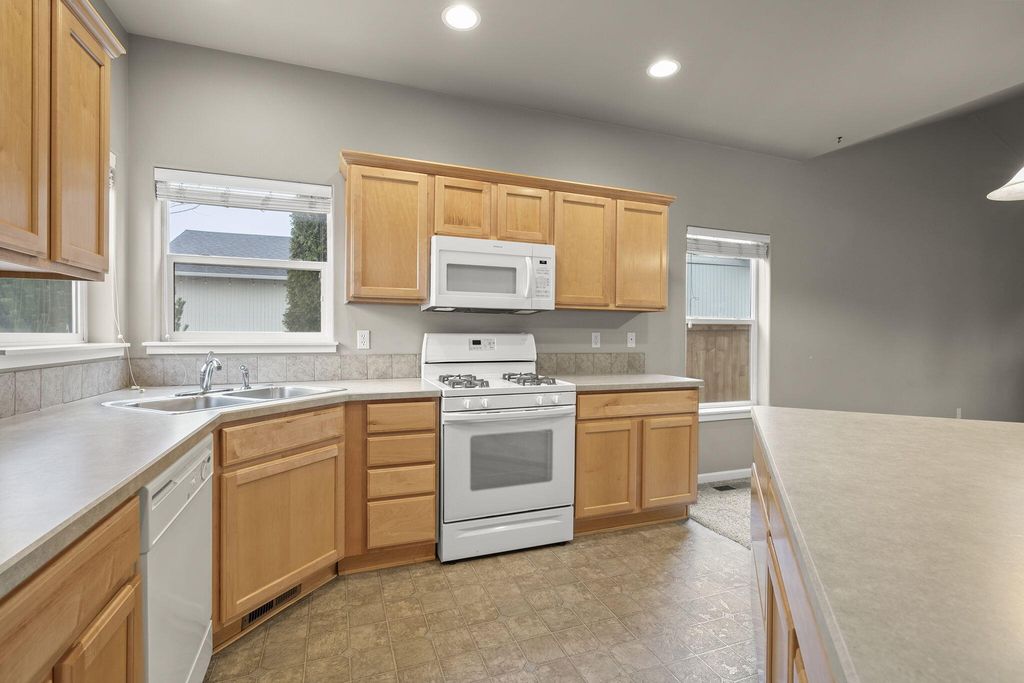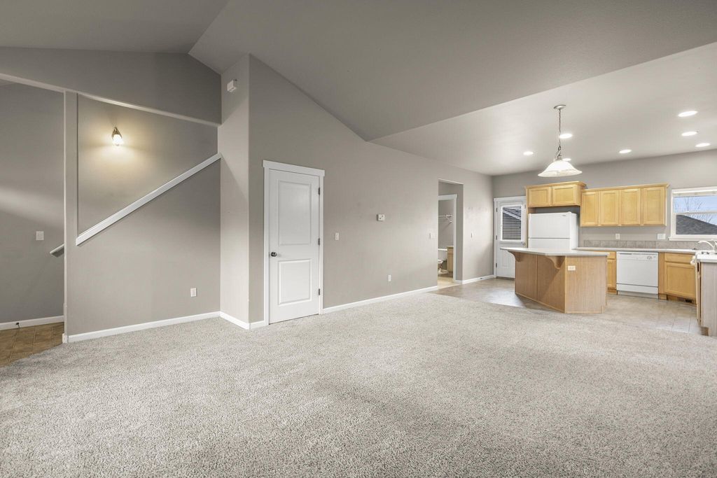 Sunlight and soaring vaulted ceilings define this 1,803 sq ft home's inviting open floor plan. The great room features a cozy gas fireplace flowing seamlessly into a well-appointed kitchen with a functional island and ample cabinetry. Two bedrooms and a full bath complete the main level.