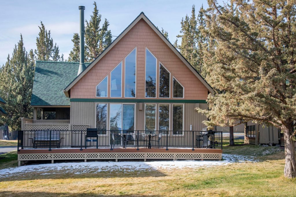 Nestled overlooking the 17th green & fairway of The Ridge Course, this classic chalet offers a perfect blend of comfort and recreation. With three bedrooms, two bathrooms, and a bonus loft space, this home provides ample room for both relaxation and entertainment. As you step inside, you'll be greeted by a well-appointed interior that exudes warmth and character. The property comes furnished, allowing you to move in with ease and start enjoying your new lifestyle right away. There is a large window in the dining space and gas fireplace in living area. The primary bedroom offers a tranquil retreat after a day of adventure, while the additional bedrooms and loft provide comfortable accommodations for family or visitors. Chalet situated at a point of view allowing for privacy and abounds with green space. Located within Eagle Crest Resort, residents enjoy access to a wealth of amenities and activities.