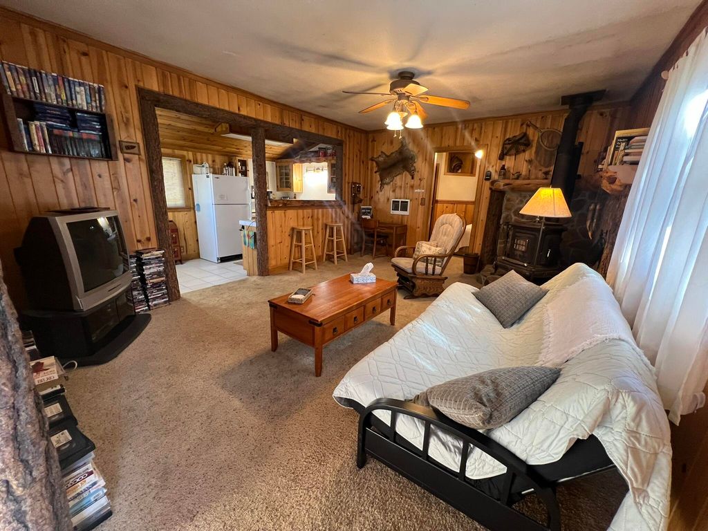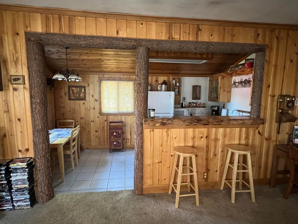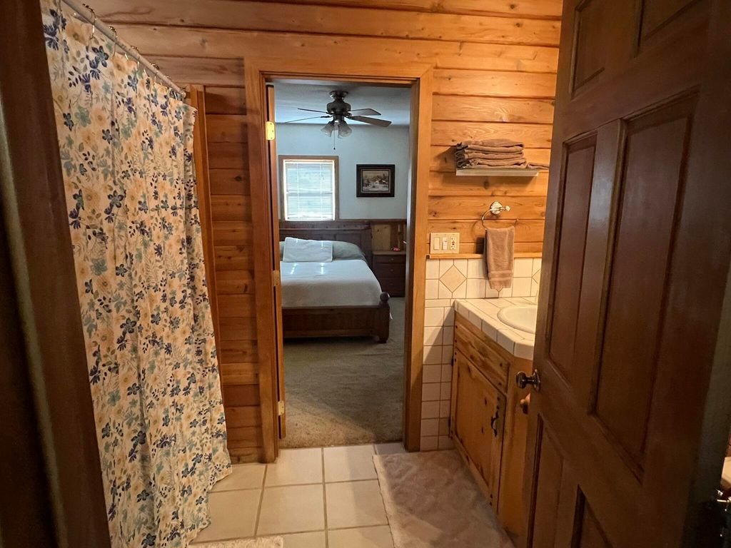 This property has been used for many years as an ARBNB. It is currently vacant. Charming Handcrafted One-Bedroom Cabin with Rustic Elegance. Discover your perfect retreat in this beautifully handcrafted one-bedroom, one-bath cabin, thoughtfully designed with artistic flair and natural materials. Built entirely with care, this cozy home boasts exquisite log accents, rich pine and cedar woodwork, and unique artisanal touches that create a warm and inviting atmosphere. The open-concept living space features tile flooring throughout the kitchen and bath, adding durability and a modern touch to the rustic charm. The fully equipped kitchen offers ample space for cooking and entertaining, complemented by the beauty of natural wood finishes.