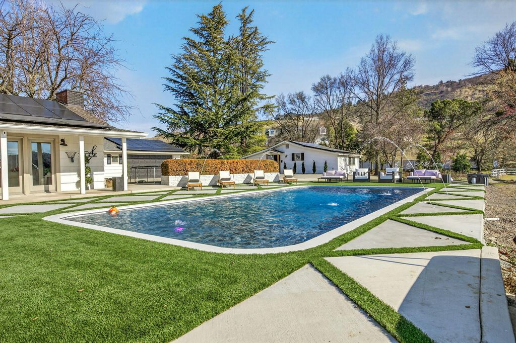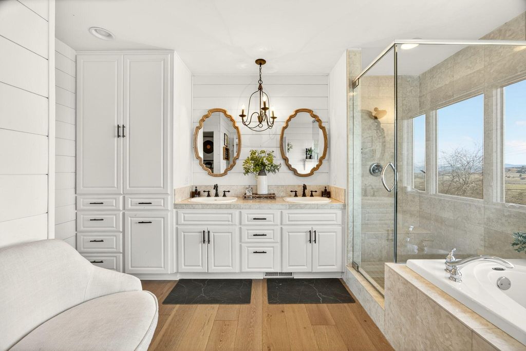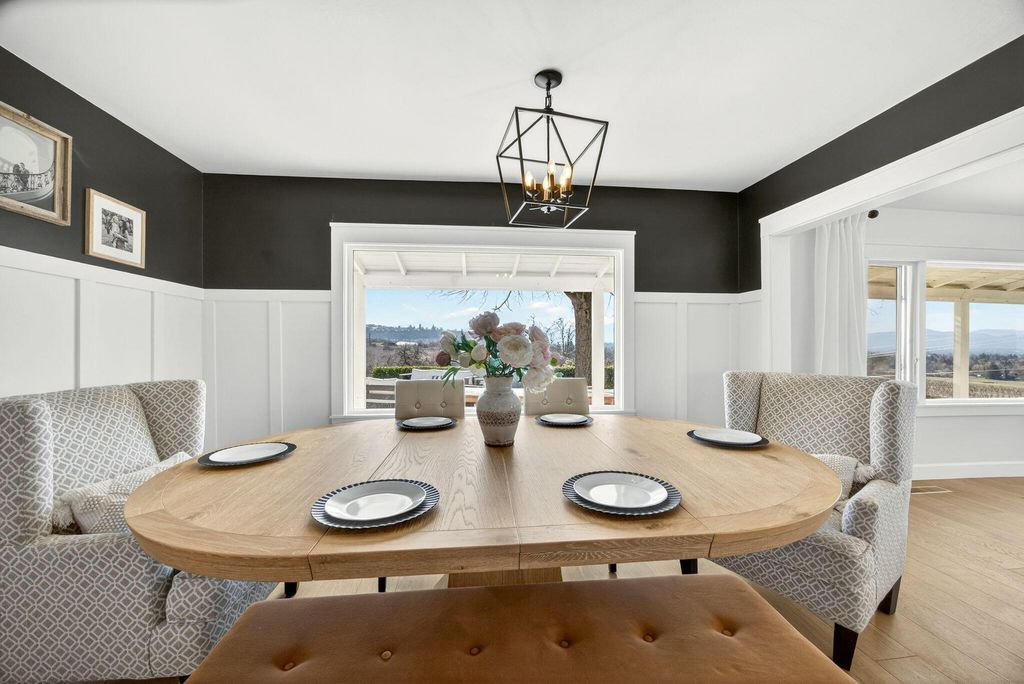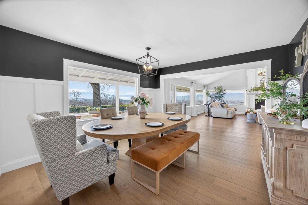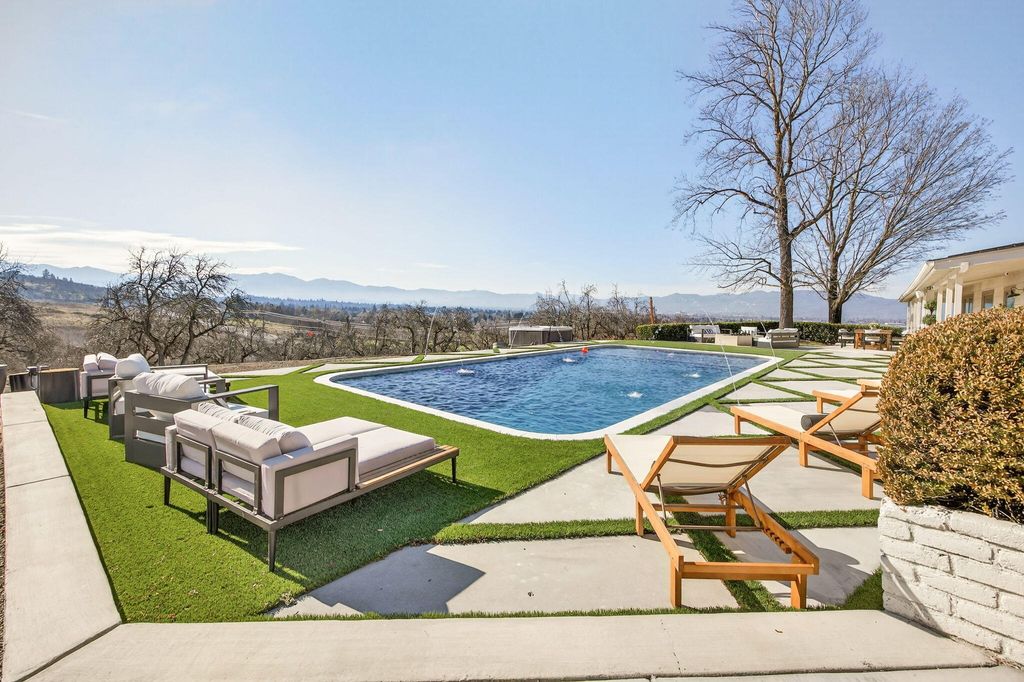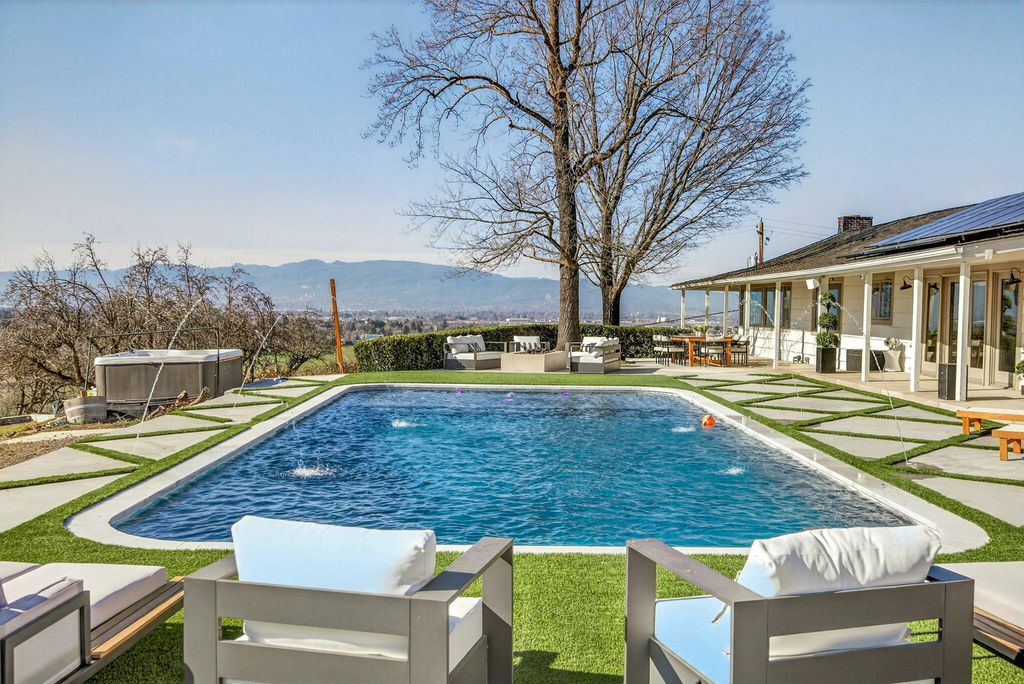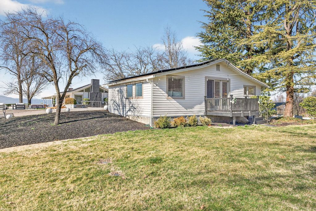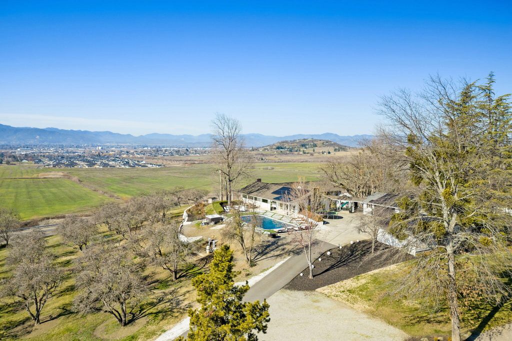 Stunning View property, one of a kind, single level w/major updates in East Medford. Main home 2985 SQ FT 3 bdrm + office & 2nd home approx. 700 SQ FT on 5.87 irrigated acres w/city water overlooking the valley w/large windows & vaulted beam ceilings. Tahoe blue Gunite heated pool w/water features & hot tub. Paved, gated entry w/fruit trees, lg wraparound porches & decks to take in the views. Private knoll top setting w/flat areas set up for horses or animals. Barn w/3 stalls, tack room & workshop. 3 fireplaces in main house w/beautiful kitchen, quartz counters, island, dbl ovens & gas cooktop. Beautiful primary suite w/French doors leading to a private side deck, duel sinks, Jetted tub, lg tile shower, walk-in closet & fireplace. 2nd home w/a full kitchen one bedroom one bath super cute w/built-in's & fireplace. It is so unique & super close in 10 minutes to medical shopping 15 minutes to Rogue Valley International Airport.