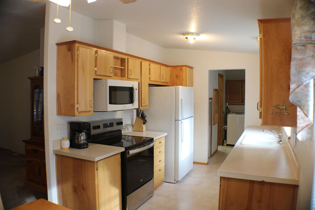 Well-maintained manufactured home on an established 1+ acre lot in NW La Pine, close to the La Pine State Park and Highway 97 access. Covered front porch, some accessible features. Cascade Lakes Highway, Paulina Peak and resorts nearby. 1080 sq ft shop a must-see. Daughters of deceased owners are acting as 'co-personal representatives of intestate estate' for sale of home).
