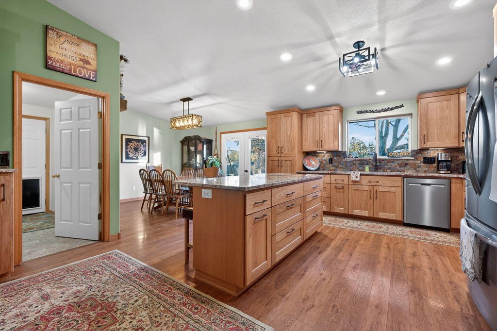 The heart of this impeccably maintained home features a stunning, full kitchen remodel with exquisite custom hickory heartwood cabinetry and stainless steel appliances.