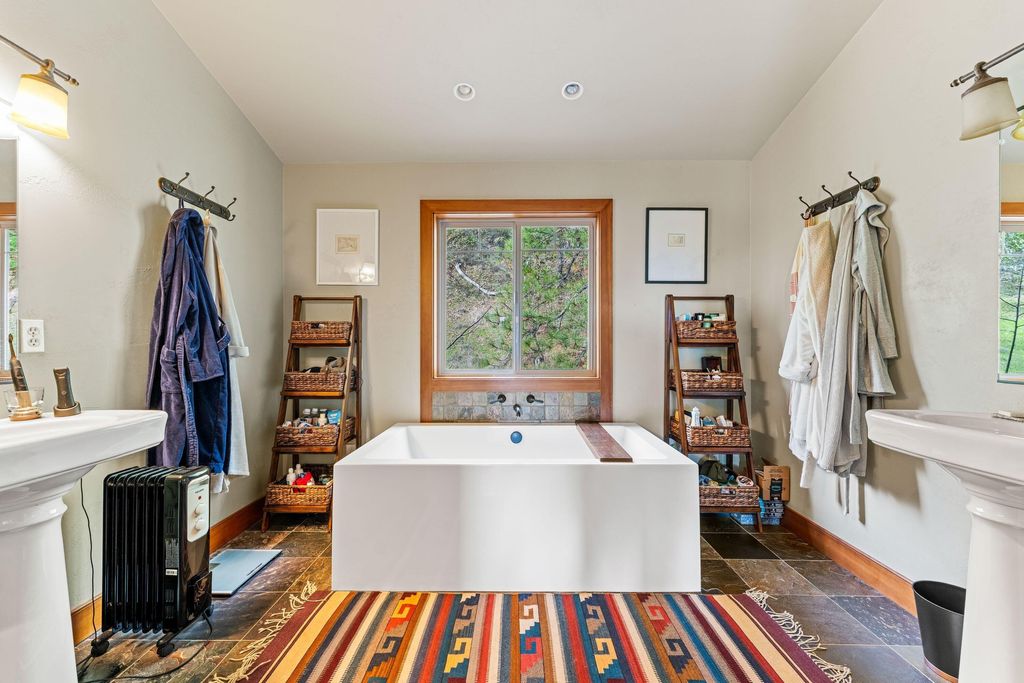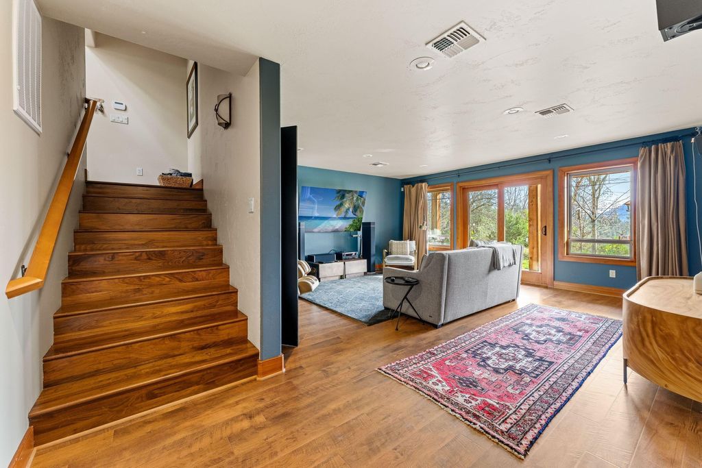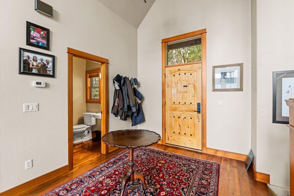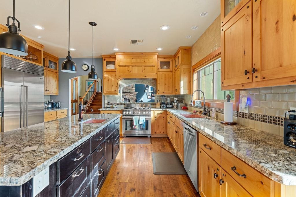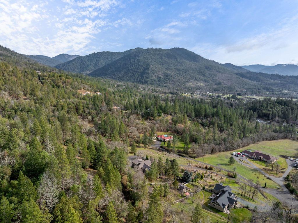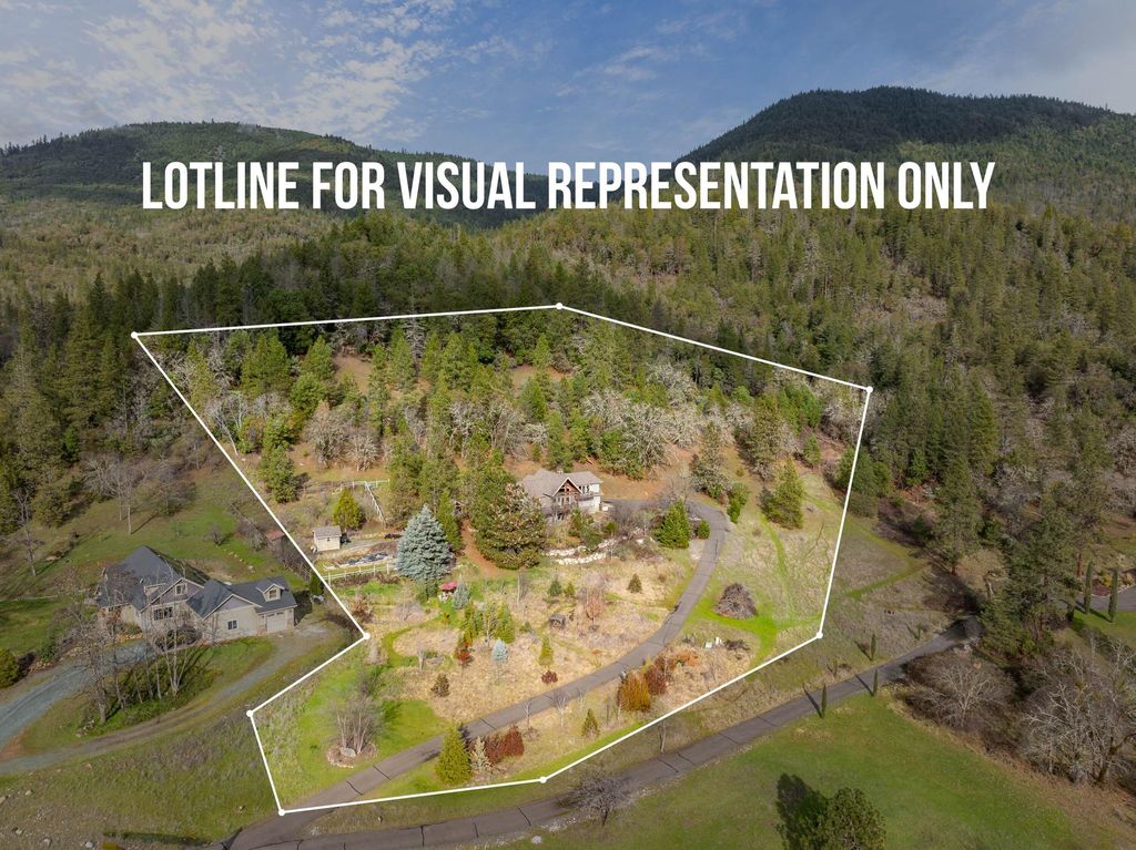 Nestled in Southern Oregon's stunning landscape, this Pacific Northwest-style home offers 3,100+ sq ft of refined living with 3 bedrooms + office and 2.5 baths. Soaring ceilings, hardwood floors, a wood-burning fireplace, and expansive picture windows define the grand living room. The gourmet kitchen features a 6-burner gas range, large island, slab granite counters, knotty alder cabinetry, copper sink walk-in pantry, and dining area. The private primary suite is a true retreat with valley views, private balcony, dual vanities, soaking tub, walk-in shower, and walk-in closet. Amenities include a 3-car garage, energy-efficient heat pumps, and generator. Outdoors, enjoy mature landscaping with natural habitat design, fenced garden with glass greenhouse, fruit trees, dog run, and shed. A rare highlight is direct private access to adjacent BLM land for hiking, wildlife, and solitude. Located in a private gated subdivision with a convenient location. Schedule your private tour!