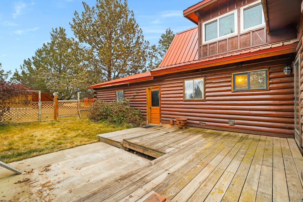 Build your dreamy Central Oregon lifestyle in this 3,246 sqft. custom log cabin, perfectly placed on 5acres near the front of Crooked River Ranch. This 3bed, 2bath home features a dramatic large loft, a primary suite with a relaxing sunroom, & extra space for all your storage needs. This property includes 3 horse stalls, a detached & heated workshop with power, and an oversized garage. The dedicated garden space with front & backyard sprinklers offer endless outdoor utility while mature trees wrap the home in a sense of privacy creating a forest-like retreat while maintaining easy access to Chinook Rd. With its massive square footage & high-quality bones, this property is a rare opportunity to create your customized grand equestrian estate. The exterior logs were professionally refinished and resealed in 2023, providing a beautiful, durable shell ready for your interior updates.
