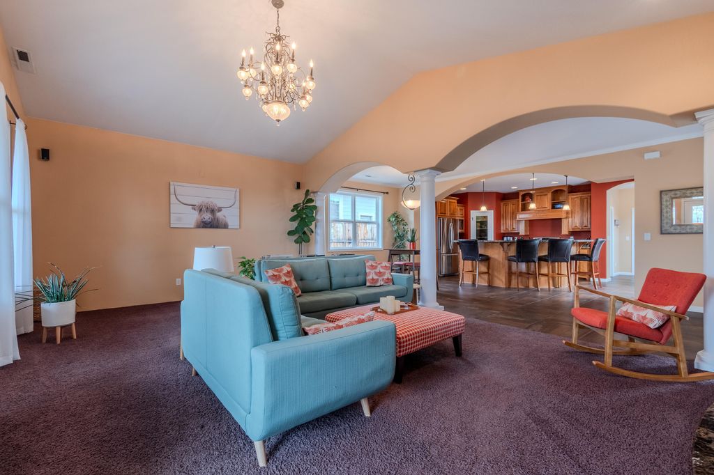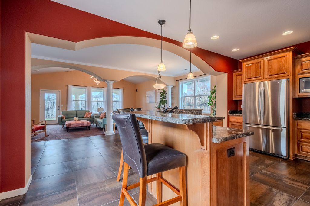 Enter through the gated front courtyard and experience a welcoming outdoor retreat before stepping inside. This 2,546 square foot Mahar built home in Stonegate Estates features a bright and open great room design with a spacious living area that flows effortlessly into the kitchen and dining spaces, creating an ideal setting for gatherings or quiet evenings at home.