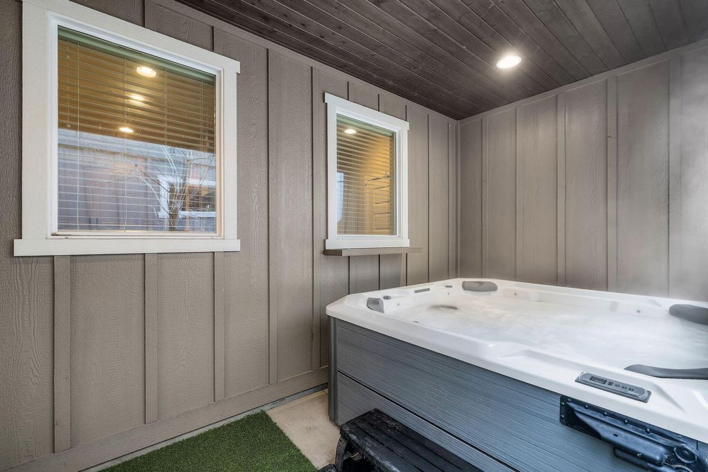 Built in 2014, this well-constructed home features high-end finishes including slab quartz countertops, LVP flooring, an open floor plan, and 9' ceilings on the main level. The spacious kitchen, dining, and living areas flow seamlessly, while upstairs offers a vaulted-ceiling primary suite and two additional bedrooms. Quality construction includes double-wall design and reclaimed wood accents, with covered front and side patios ideal for outdoor living. The garage is wired for electric vehicle charging, the hot tub is included, all just minutes from parks, trails, shopping, and dining.