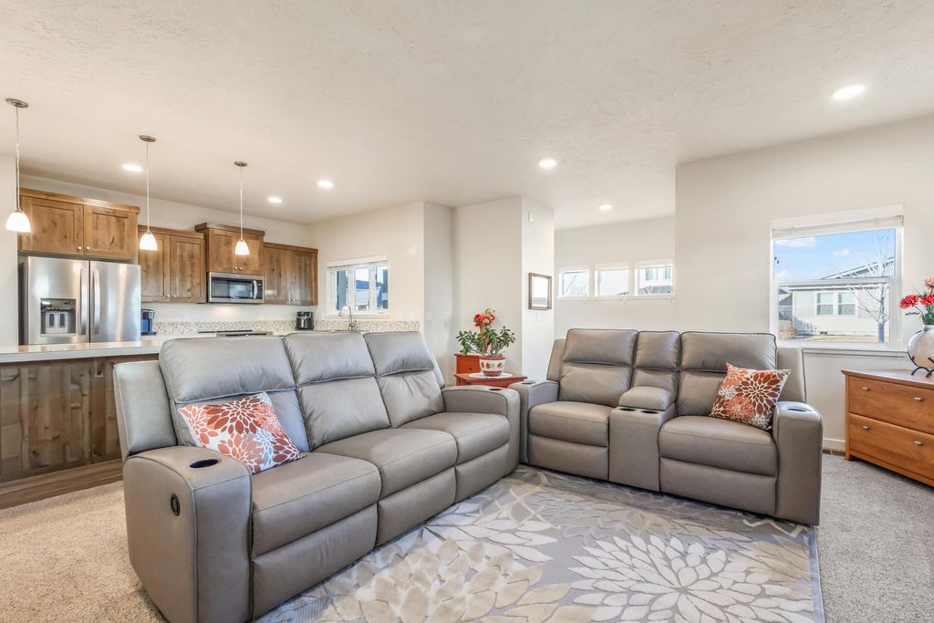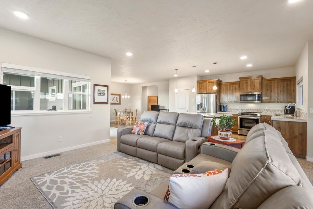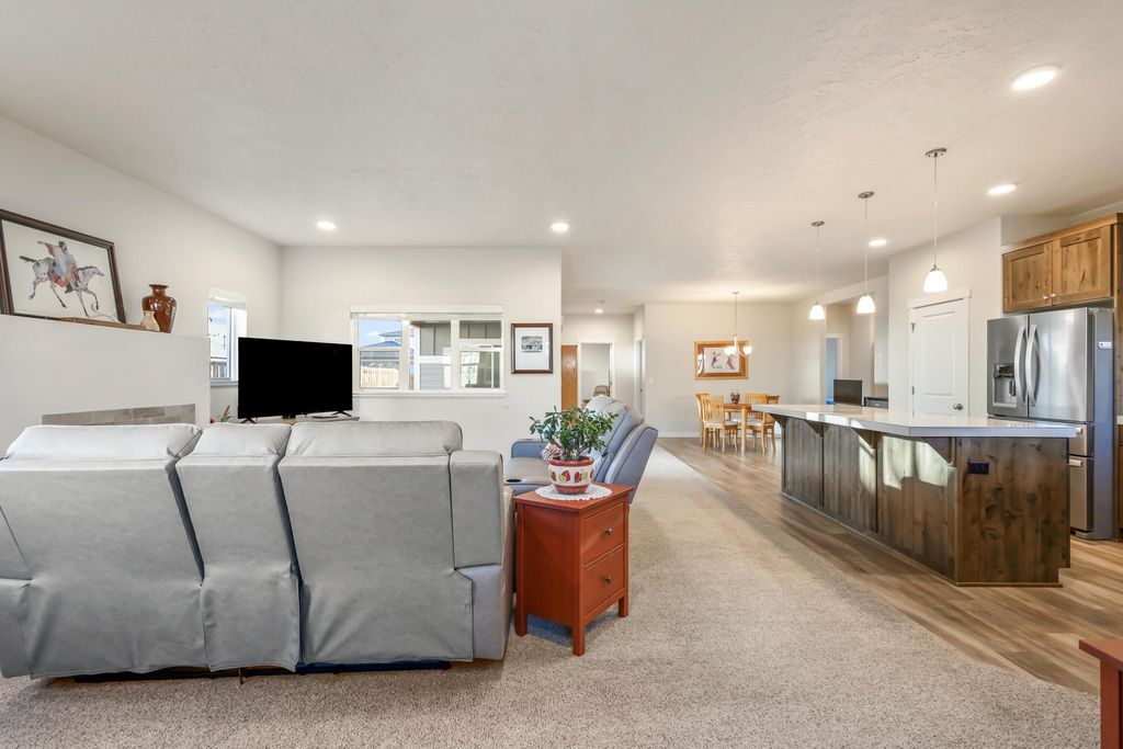 Like-new and meticulously cared for, this Earth Advantage home in Iron Horse blends comfort, efficiency, & thoughtful design in one beautiful package. The open-concept great room is warm and inviting w/a cozy gas fireplace & seamless flow into a pristine kitchen featuring porcelain tile countertops, knotty alder cabinetry, tile backsplash, stls/stl appliances, and a new range. Split floor plan offers 2 beds & a full bath on one side of the home along with a dedicated office space. The private primary suite occupies its own wing and includes a spacious walk-in closet & a large ensuite bath w/dual sinks & a walk-in shower. Upgrades, including a whole-house water filtration system serving both hot & cold water, plus a generously sized laundry room complete with custom cabinetry & a folding counter. Outside, the immaculate landscaping has multiple plants, flowers, trees, rocks and paths as well as a covered patio & new fence so all you have to do is move in and enjoy your new home.