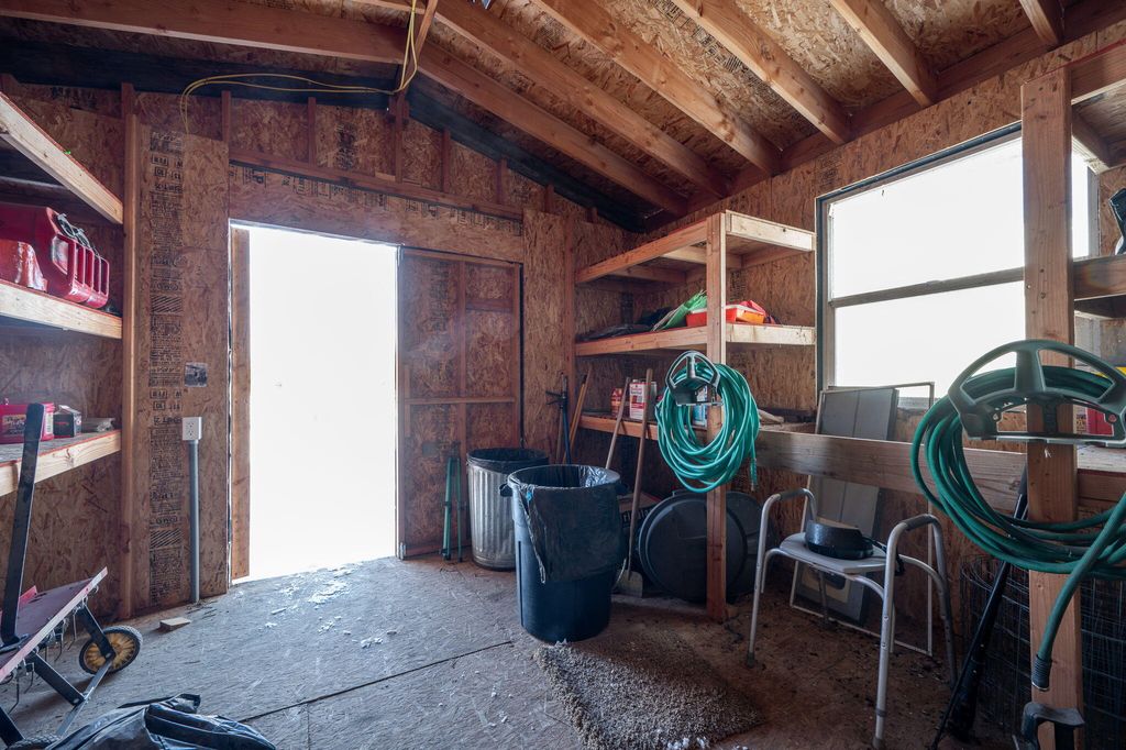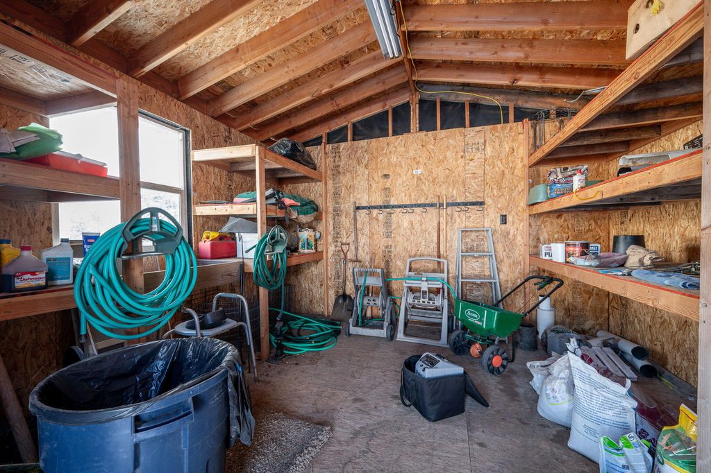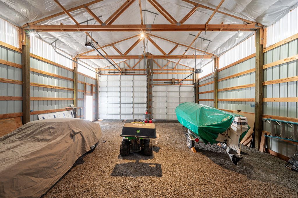plenty of ample storage and a workbench already in place, along w/ a ½ bath. The 1200 sq ft graveled floor,