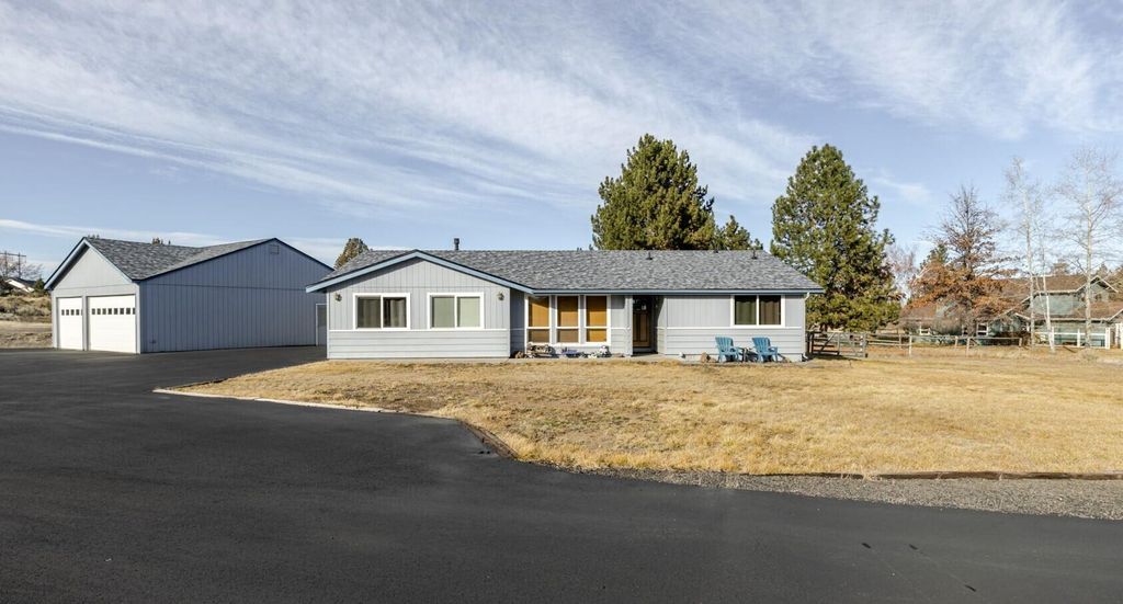 This charming close to town but in the country ranch home w/ cascade mountain views, sits on a corner 2.6
