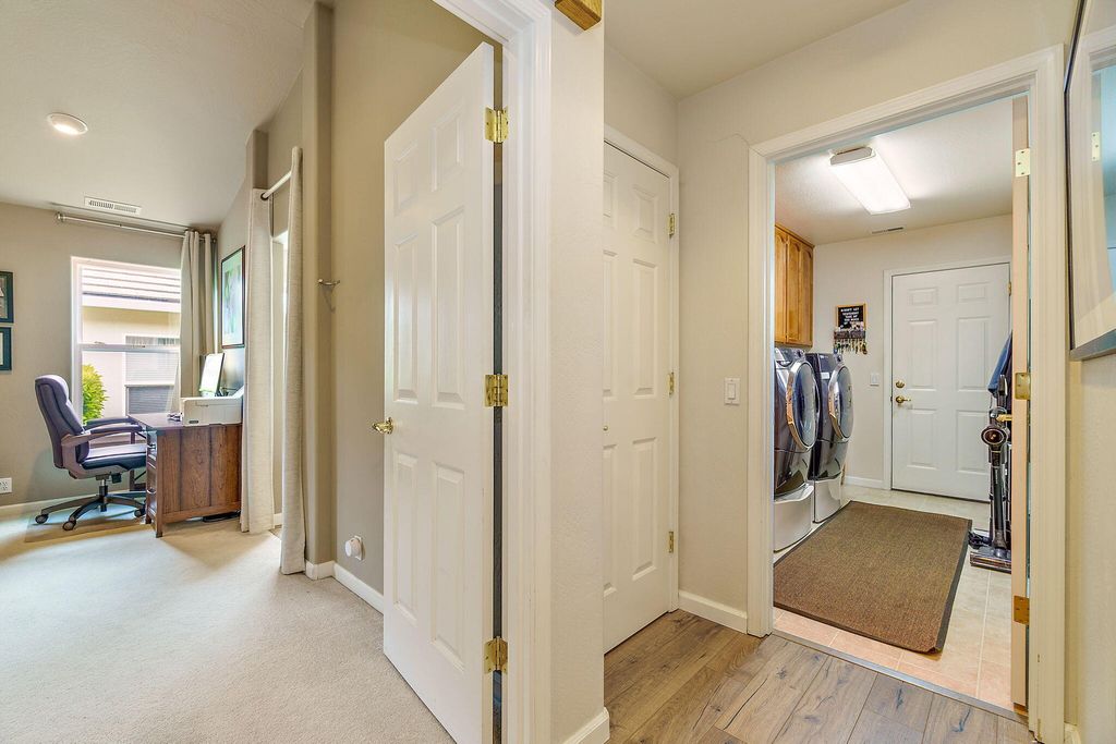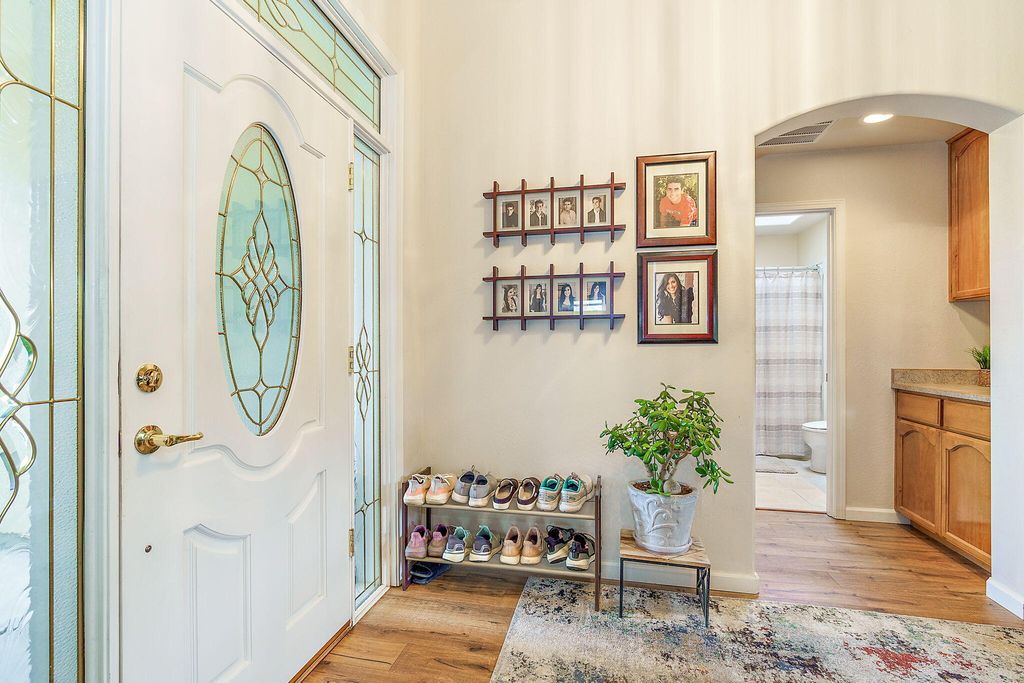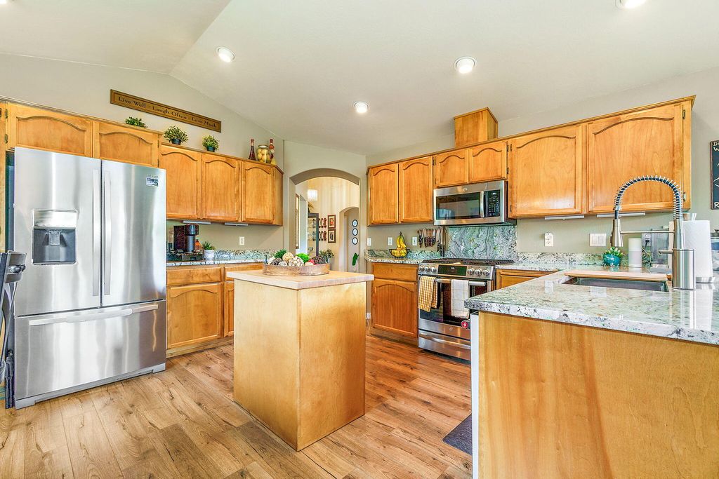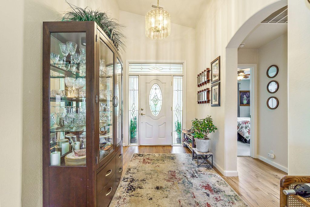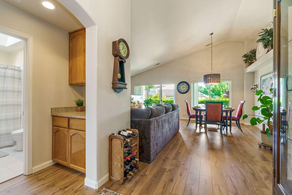 Gated Aldercreek Estates prime location one level beautiful home with many newer updates. Makes it a great home a must see! Large vaulted ceilings w/plant ledges, large windows to take in the southern exposure and sunshine w/covered patios, private long driveway in cul-de-sac location w/large covered front porch. Beautiful upgraded home w/newer flooring in main areas. Kitchen w/new stainless steel appliances, 5 burner gas cooktop, convection oven, granite counters, kitchen island, many cabinets w/pantry, eating bar open to family room + a lg living rm w/gas log fireplace & formal dining w/large vaulted ceilings in kitchen, family room, and breakfast room. Double door entry into primary suite w/vaulted ceilings, double sinks, large shower, jetted tub, water closet & large walk-in closet. 2nd guest bedroom w/bath next to it w/lg window. Oversized laundry room w/deep sink & many cabinets for storage. Oversize 2 car garage finished w/workbench & storage. Stucco exterior w/tile roof.