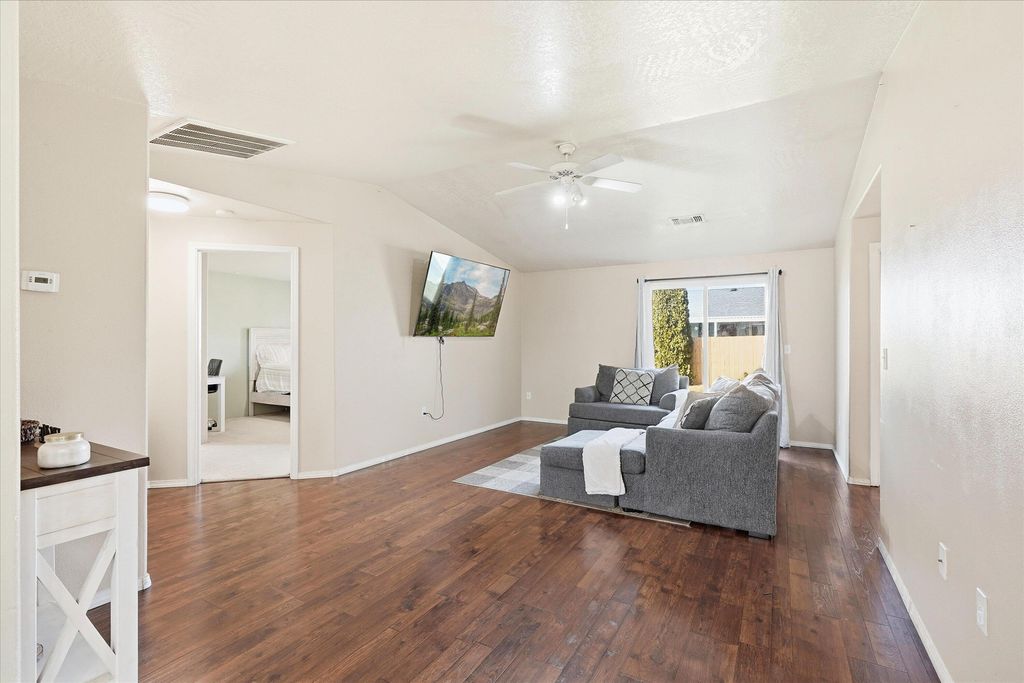 Beautiful 3-bedroom, 2-Bath home situated on a .14-acre lot near parks and recreation. This open-concept residence features s split floor plan with vaulted ceilings and laminate wood-style flooring throughout the main living areas. The property includes Rv parking and a spacious landscaped back yard, ideal for activities and entertaining.