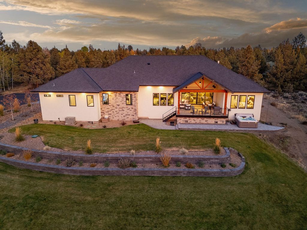 Welcome to your exquisite oasis in Bend, Oregon! This stunning single-story residence, built in 2021 and barely lived in, offers 3,727 sqft of luxurious living on a sprawling 3.6-acre estate, just moments from the airport. Step inside to discover a sophisticated open floor plan, highlighted by a magnificent primary suite that boasts a spa-like bath with a walk-in shower, a soaking tub, and an expansive walk-in closet complete with a separate washer and dryer. Three additional ensuite bedrooms provide privacy and comfort for family and guests, while an elegant office and a spacious bonus room enhance your living experience. Indulge your inner connoisseur in the hidden wine room, or entertain effortlessly with the secret butler's pantry featuring a full-sized refrigerator. The three-car garage and a remarkable 3,000 sqft shop offer ample space for all your pursuits. This home embodies the perfect blend of sophistication and comfort.