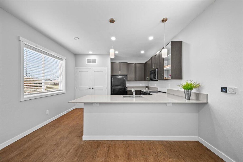 Be the first to enjoy this never lived in 917 sq. foot, 2 bedroom one bath modular home in Grants Pass. ''Modular'' is considered Frame Built and will qualify for financing the same as a frame built house. Modern design paired with efficiency and easy maintenance makes this a perfect starter home, investment property or opportunity to downsize . Home features a metal roof, hardie board siding, vinyl plank flooring and quartz countertops. 9 ft ceiling create a comfortable and spacious living environment. Daikin ductless mini split heating and cooling units with Wi-Fi remote control help keep costs down. General Electric appliance package includes range/oven, refrigerator, dishwasher, microwave and front loading smart washer and dryer. New low maintenance landscaping with timed drip system and sprinklers. Additional shed for storage. New asphalt driveway.