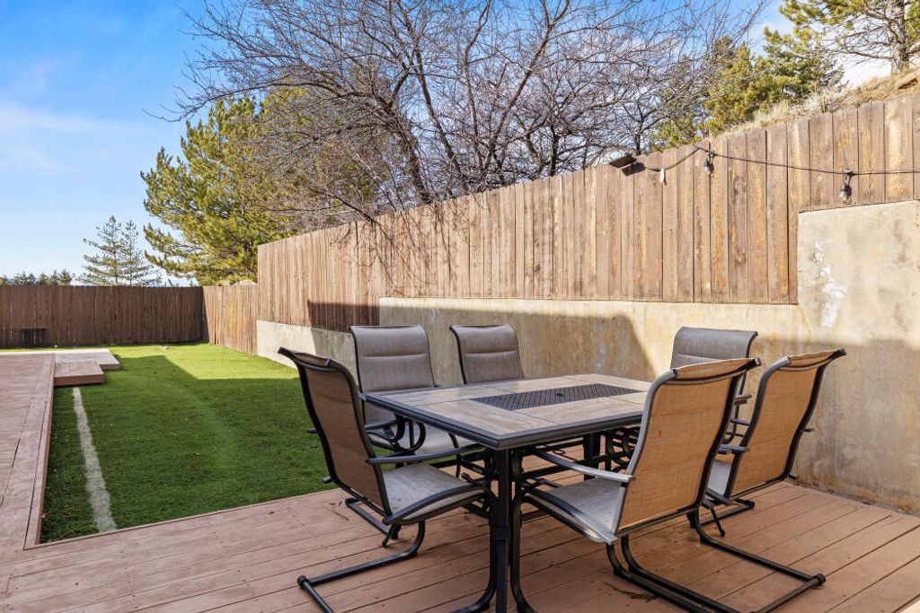 The gourmet kitchen is a chef's dream, showcasing premium appliances including a Viking gas range with commercial hood, dual ovens, granite countertops, travertine flooring, a convenient pot-filling faucet above the range, and a raised dishwasher for ergonomic ease. The spacious primary suite is located on the main level, providing convenience and privacy. Outdoors, enjoy a fully fenced backyard with low-maintenance turf and an efficient drip irrigation system, all complemented by a durable tile roof. Ideally situated near Steens Park and an extensive network of hiking and biking trails, this home is perfect for those who appreciate both luxury living and outdoor recreation.
