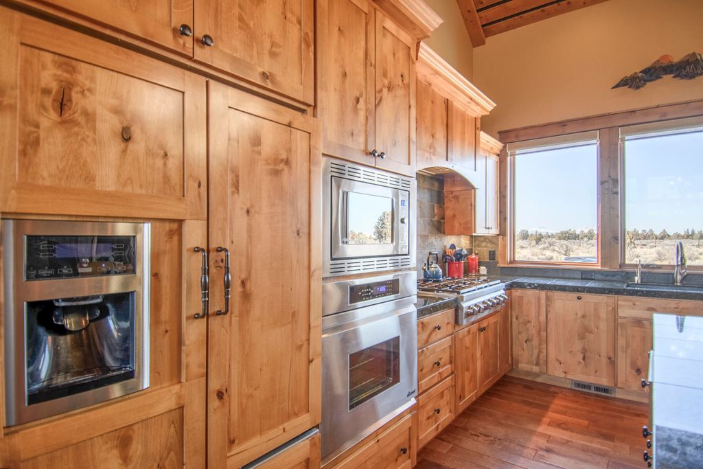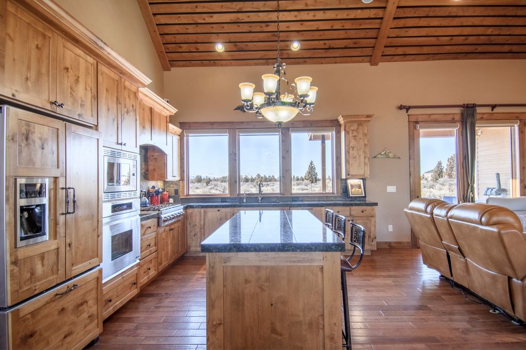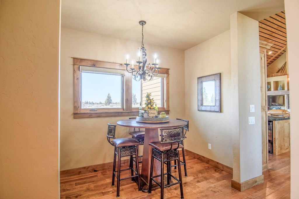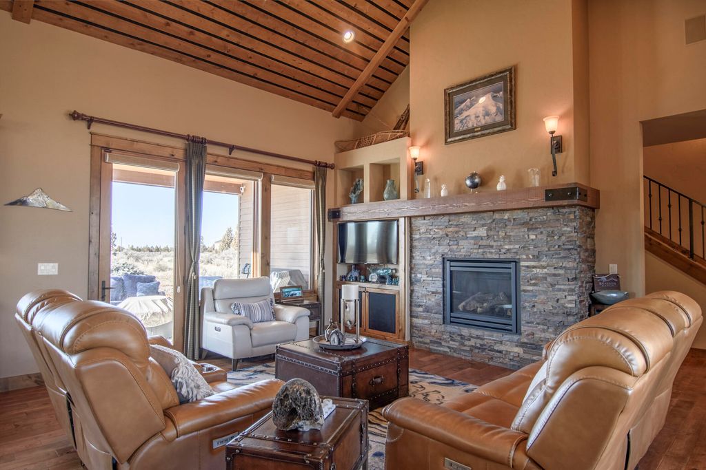 Lodge style home in Brasada Ranch with unobstructed, breathtaking views of the Cascade Mtns! Home features primary suite on main level, vaulted ceilings with wood accents & lots of windows providing natural light. Home backs to a 10-acre privately-owned parcel, providing privacy from the backyard. Natural stone fireplace in spacious great room, hardwood flooring and knotty alder cabinets and doors throughout. Granite island and countertops in kitchen & easy access to outdoor area that is perfect for entertaining. Primary bath with tile floor, counters, shower and large soaking tub. Two bedrooms upstairs with great mountain views & adjoining full-bath. A back stairway leads to a spacious bonus room over the 3-car garage. Enjoy all the benefits of Brasada membership including Athletic Center, 5 pools, Equestrian Center, 18-hole golf course, Spa, pickleball courts, restaurants and so much more. Just 25 minutes from Bend!