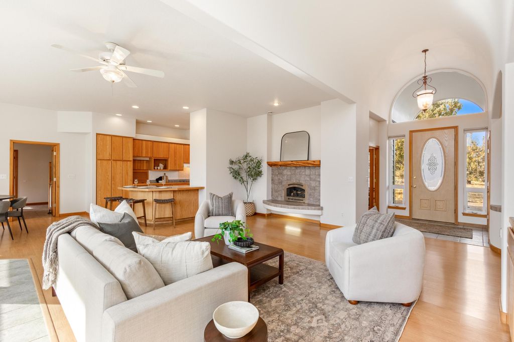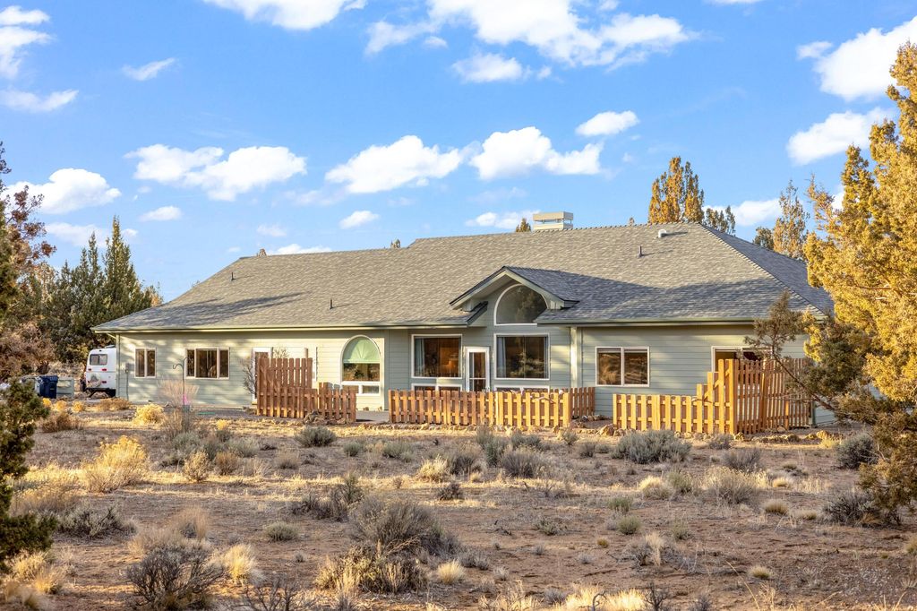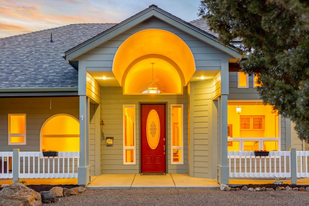 Privacy, quiet, in ''Juniper Ridge'' situated on over 11.27 acres. Bring horses and or any dreams you ever had for the ideal setting. Custom, one-owner passive solar home with radiant floor heat and flexible multi-generational potential. New roof and fresh exterior paint. Open-concept main-level living with a generous bonus room and balcony. Large unfinished storage area offers expansion potential. Four bedrooms, three baths, and two office/den/flex rooms. Triple garage (fits full-size pickup). Spacious kitchen with two ovens, pull-out cabinetry, granite tile counters, breakfast bar, appliance garage, and lazy Susan. Barrel ceiling, solar tube, skylights, and large windows create light-filled warmth year-round. Large patio, garden space, and irrigation system. Room for shop, arena, or ADU. Close proximity to BLM land for hiking, riding, and wildlife viewing. Peace, privacy, and all the possibilities.