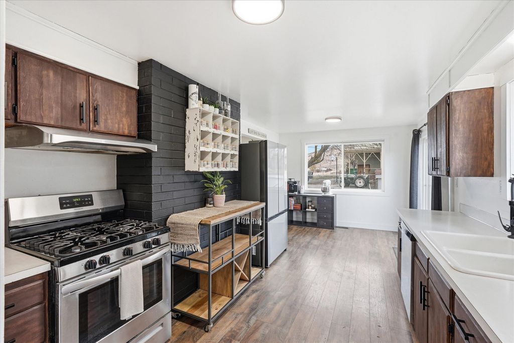 Welcome home to this charming 2-bedroom, 1- bath property situated on a spacious lot with stunning panoramic views and numerous functional upgrades throughout. This well-maintained home features updated flooring, fresh interior paint, and a remodeled bathroom, new fixtures, and efficient heating with both a wood stove and a gas furnace. Major infrastructure improvements include a strong-producing well with a new pump and filtration system, a newer septic system (2022), and a roof installed in 2010. The property offers exceptional versatility with multiple outbuildings, including a barn, root cellar, wood shed, chicken coop, and an updated garage with new siding, paint, and 220 power. Enjoy privacy, usable land, scenic views, rural living, hobby farm potential, extra storage, workspace flexibility, and room for animals or equipment in a peaceful setting. Schedule a showing today!