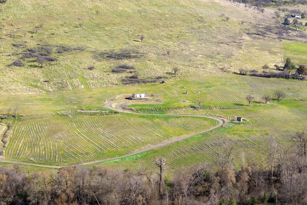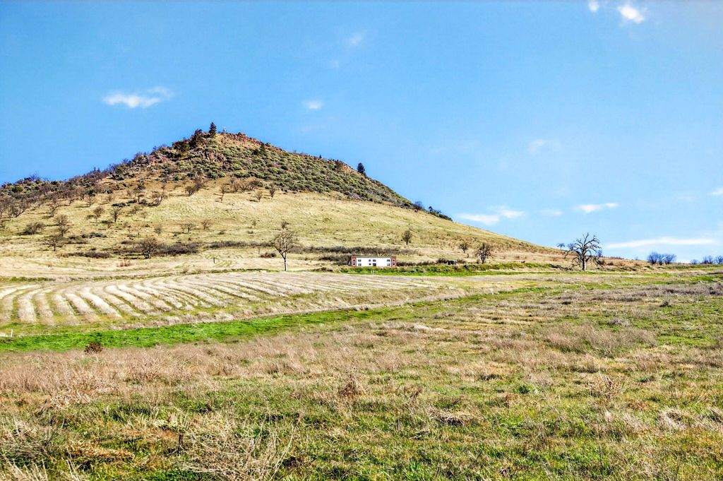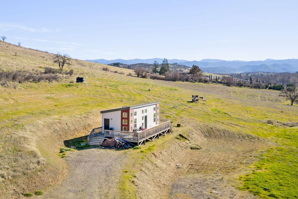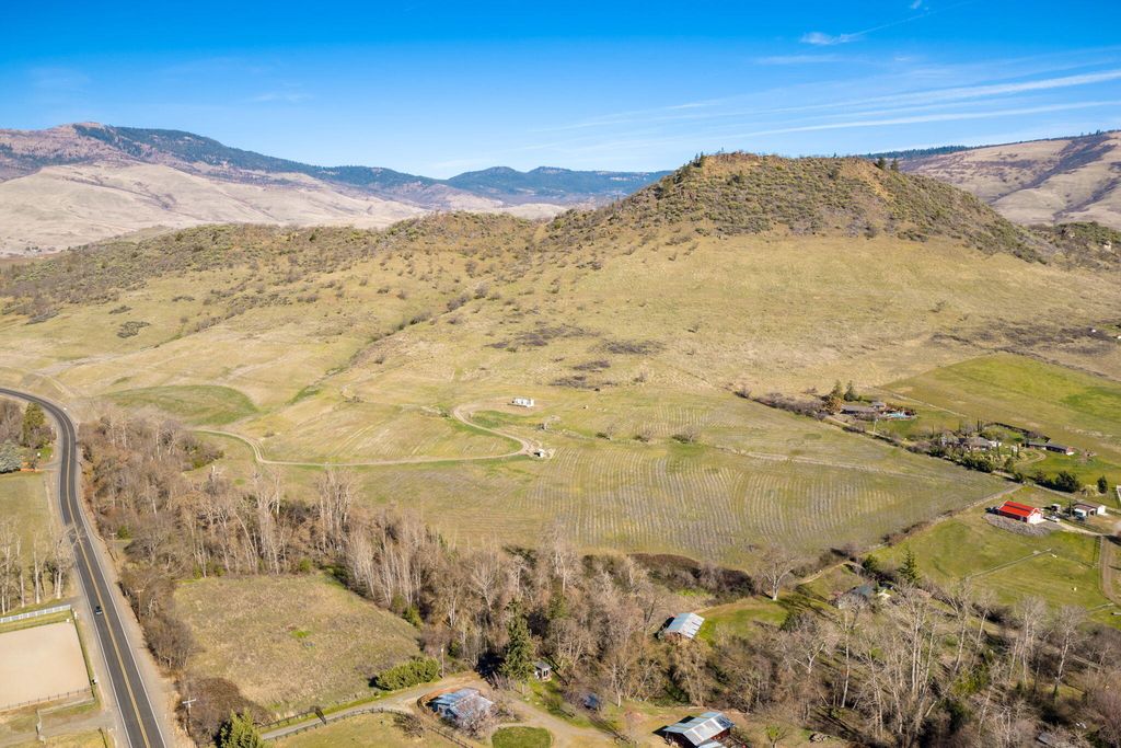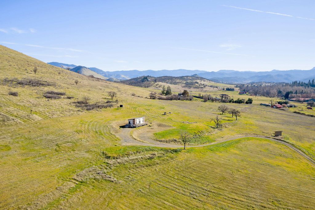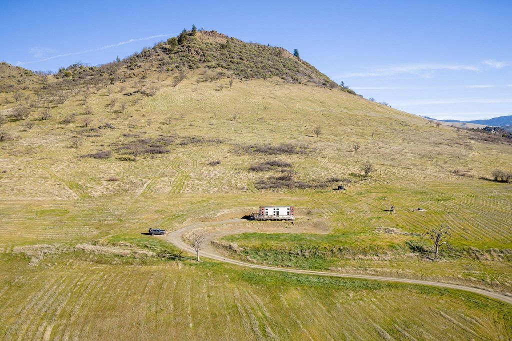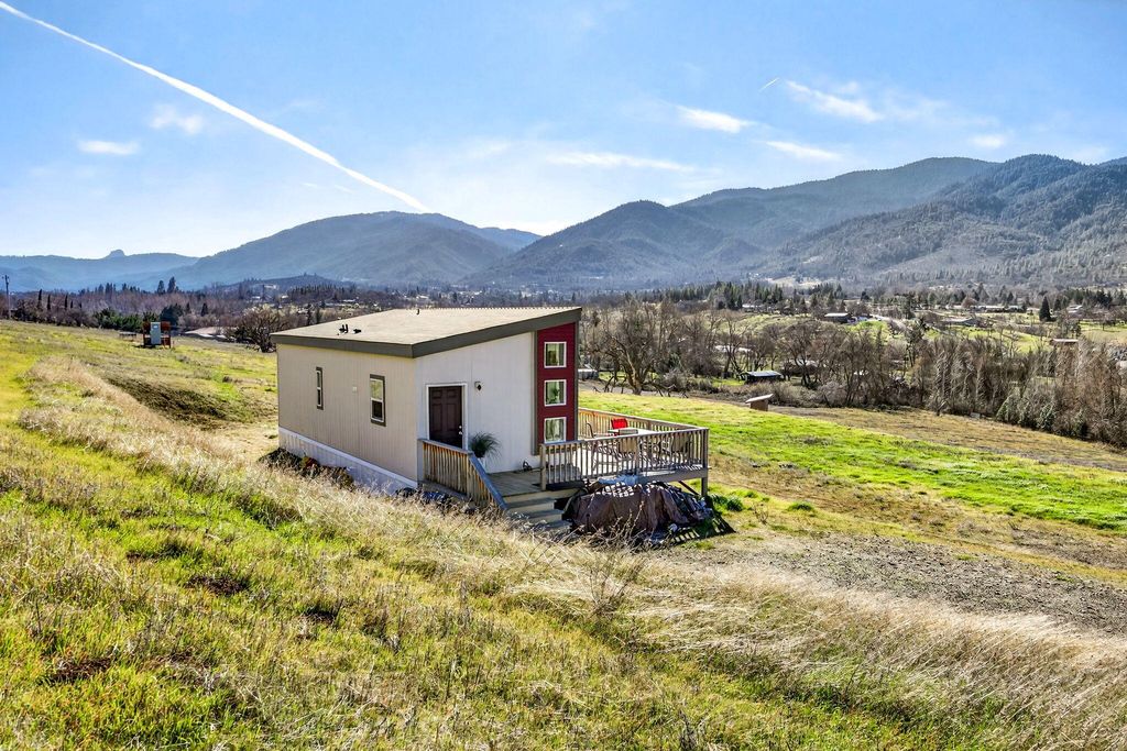 LOCATION IS AMAZING!! Property consist of 2 additional tax lots. Super cute 2020 built MFG home w/vaulted ceilings & floor ceiling windows w/quartz counters & tile shower & lg wood deck. Near Emigrant Lake this property would be beautiful to build your dream home w/gated entry & gently sloping gravel road to the home w/incredible views of Cascade Mountains & Pilot rock. Creek frontage w/15 acres of water rights from Neil Creek. Trust has invested over $150,000 into the Creek management and rehab planting thousands of native plants. Gently sloping acreage w/pastures for horses or cattle or grape vines. 2 adjoining tax lots including. Priced to SELL! Buyer to do their own due diligence. Potential for maybe possibly another home site?