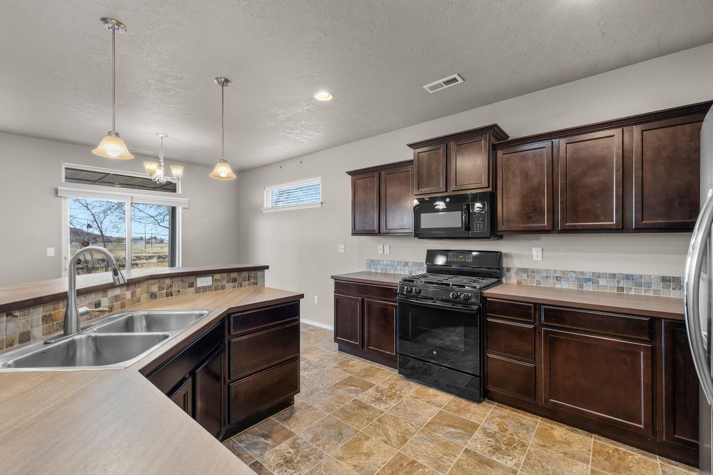 Don't miss this gem located in the Diamond Bar Ranch subdivision in NE Redmond w/Smith Rock & Cascade Mtn Views! Nestled in a serene setting, this well-maintained home offers expansive views from its spacious backyard bordering the northern urban growth boundary. Home ftrs an open floorplan w/an abundance of natural lighting & a cozy gas burning fireplace. Kitchen ftrs an abundance of sleek cabinetry & counter space, brkfst bar seating, pantry, & an open eating area leading to the covered back patio area. Spacious primary w/dual vanities, built-in storage, enclosed water closet, step-in shower & massive walk-in closet. Two addtnl well-appointed bedrooms share a full bath. Double car garage + laundry room w/W&D included. Backyard backs to the canal w/plenty of space for expanding garden spaces & the low maintenance landscaping. Property is conveniently located w/easy access to both Hwy 97 and Hwy 126, placing you perfectly to explore all that Central Oregon has to offer.