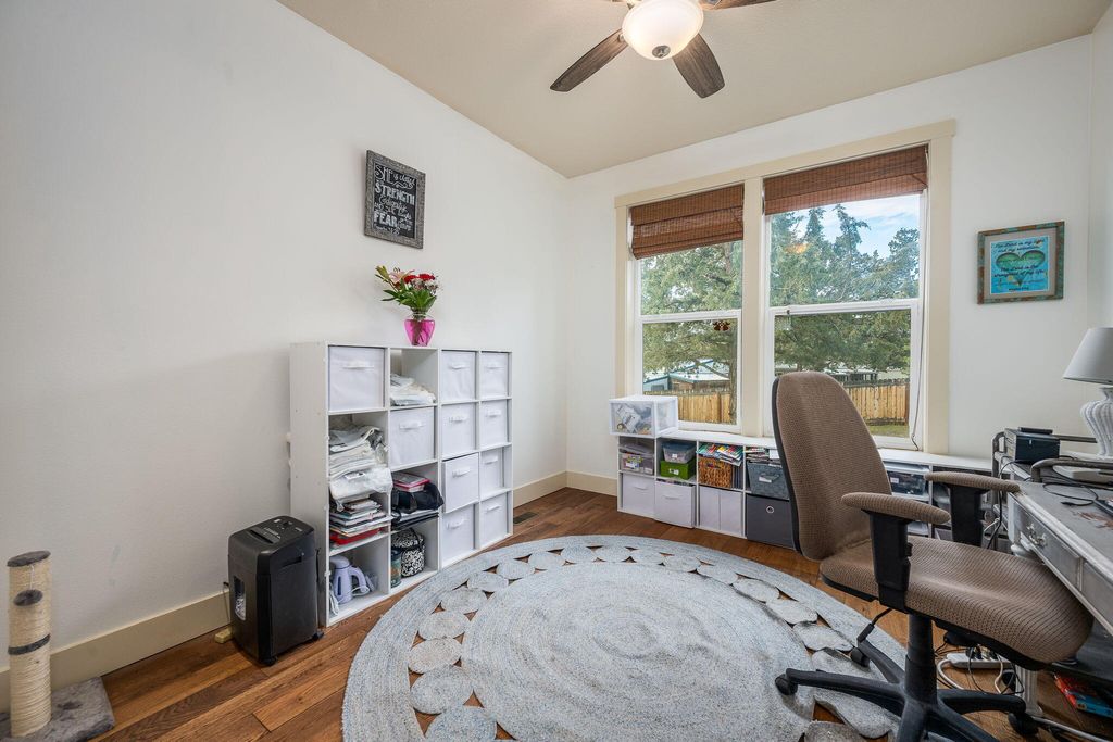 Custom built Craftsman home positioned on 1.02 acres in Crooked River Ranch. Set toward the back of the property for added privacy, this residence offers a thoughtful blend of open living space and practical amenities designed for long-term comfort. The main living area features a spacious living, dining, & kitchen layout with solid oak hardwood floors, 9-foot ceilings, ceiling fans, and a pellet stove. The kitchen is finished with granite counters, stainless steel appliances, range hood, and ample workspace. Washer/Dryer & refrigerator are all included. Three bedrooms & two full baths provide flexibility, w/ the third bedroom designed in a den style ideal for office or guest use. A covered front porch & concrete back patio extend the living space outdoors. Additional improvements include an attached garage, 26x32 shop (832 sq ft), greenhouse, storage shed, fenced side & backyard with gated access. Contact your realtor to arrange a private tour of this remarkable property today.